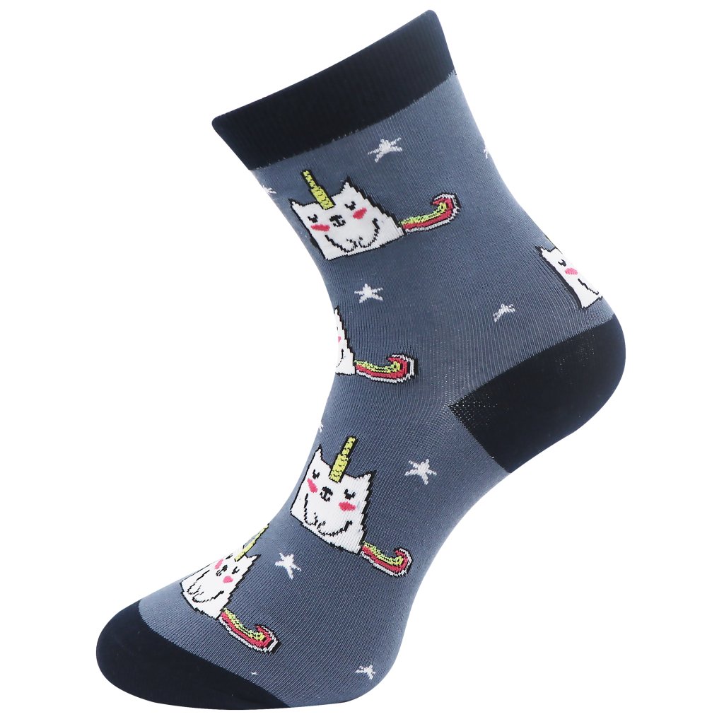 Női nyomtatott zokni UNICORN CAT NP6322 - sötétkék 9001482-2