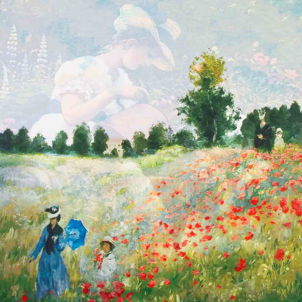 Női sál festmény nyomattal - Gyermekemlék virágokban és A kertben 9001637-31
