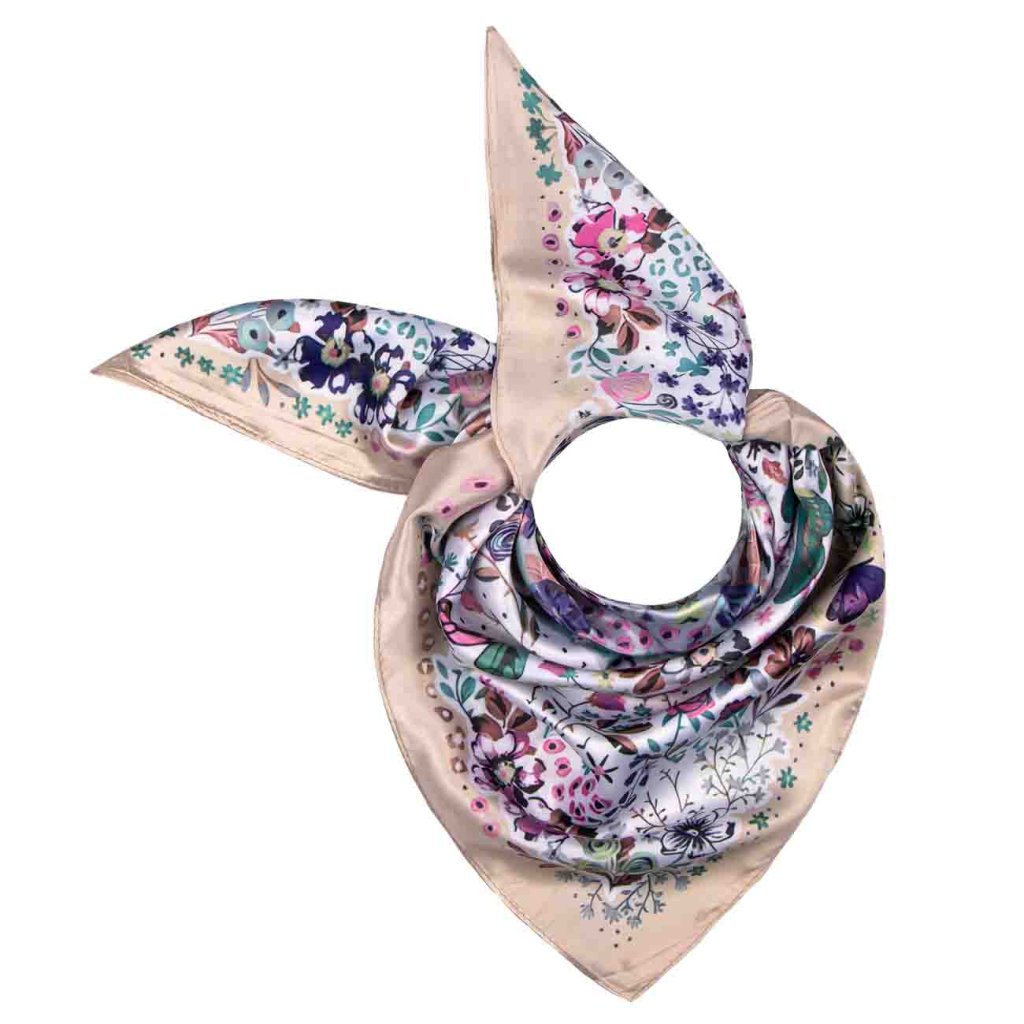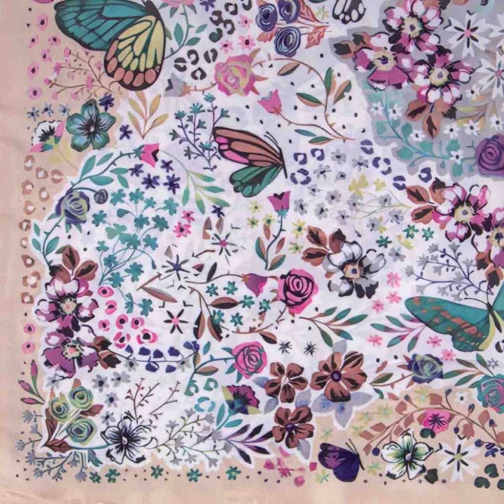 Finom, nőies, modern sál virágmintával és pillangókkal.
