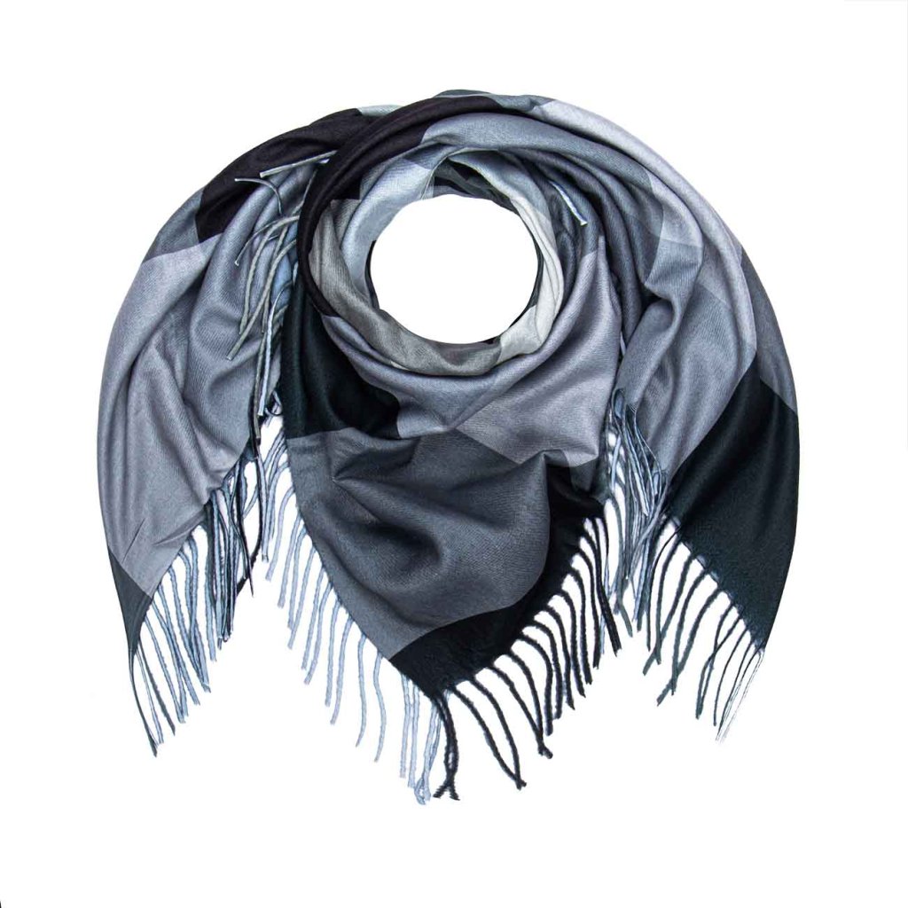 Elegáns női sál klasszikus fekete és szürke kombinációban. A kockás minta időtlennek tűnik, és könnyen kombinálható bármilyen ruhával. A kasmír hozzáadásával készült meleg anyag puha, kellemes és ideális a hűvösebb napokra.