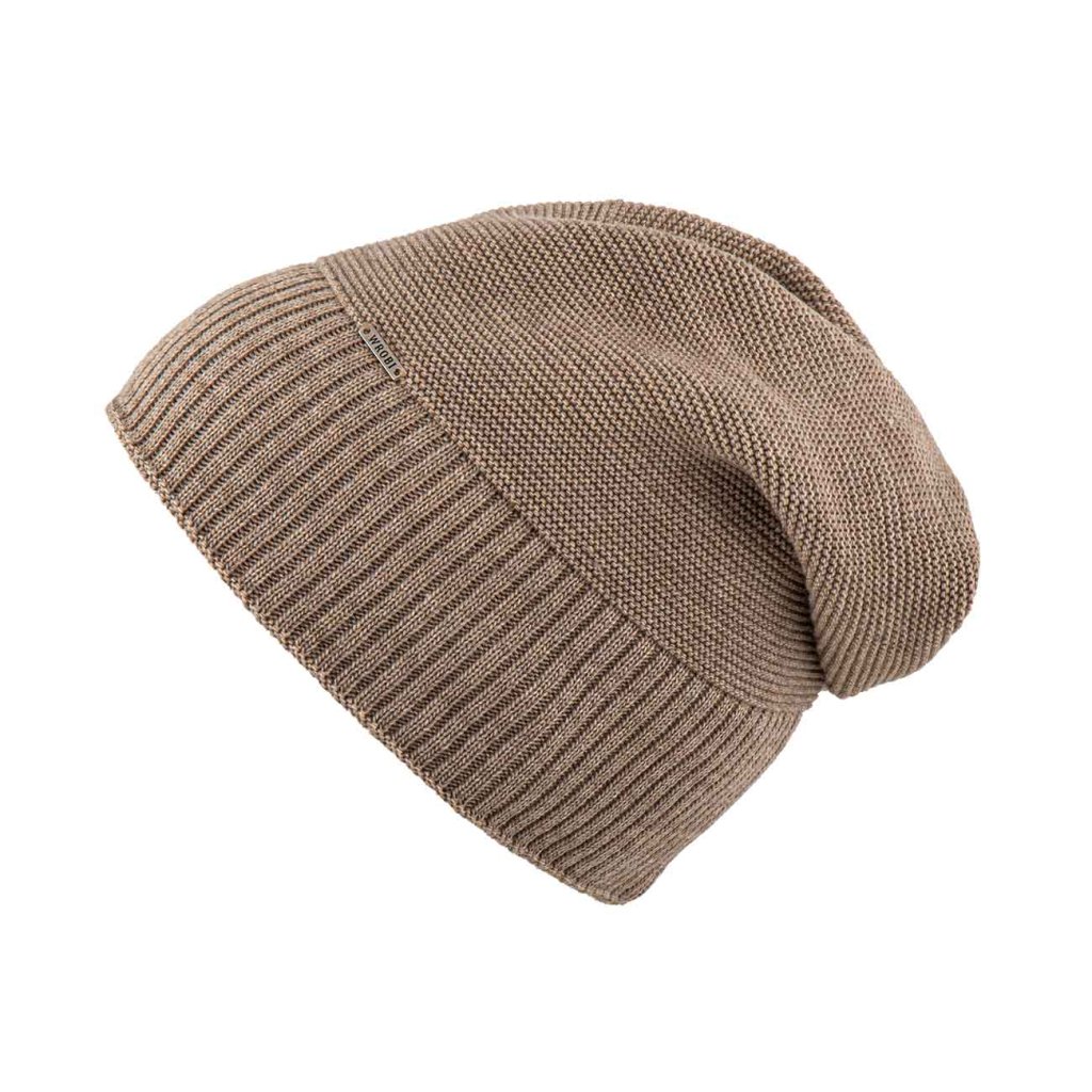 Az időtlen bézs színű, stílusos kötött sapka nagyszerű kiegészítő a hideg évszakra. A puha, rugalmas kötés kényelmesen illeszkedik a fej formájához, míg a bordázott szegély biztosítja a stabil illeszkedést csúszás nélkül. A finom melírozott hatás modern és finoman texturált megjelenést kölcsönöz a sapkának, így bármilyen semleges tónushoz vagy a téli ruhatár élénkebb színeihez is illik.