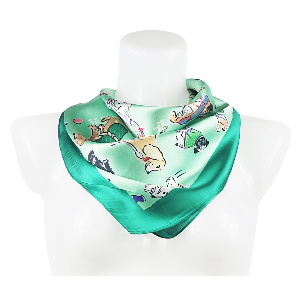 Női selyemsál RR3050-05 légiutas-kísérő kutyás mintával, zöld színű 7200621-7