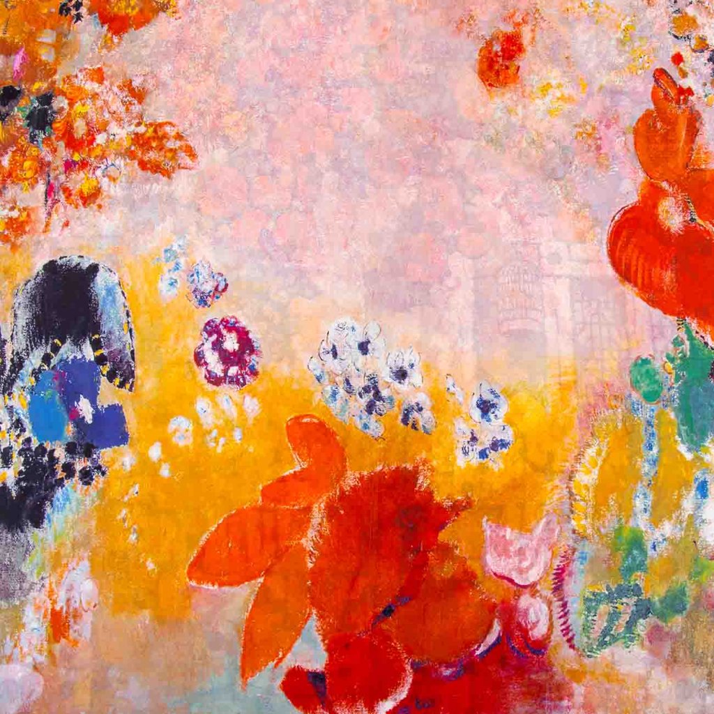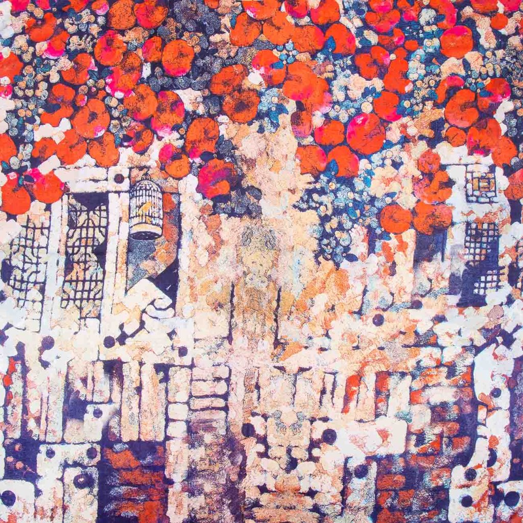 Női kétoldalas selyemsál RR3055 légiutas-kísérő mintával - absztrakt virágok és rózsafestmény egy ház előtt, 9001637-16