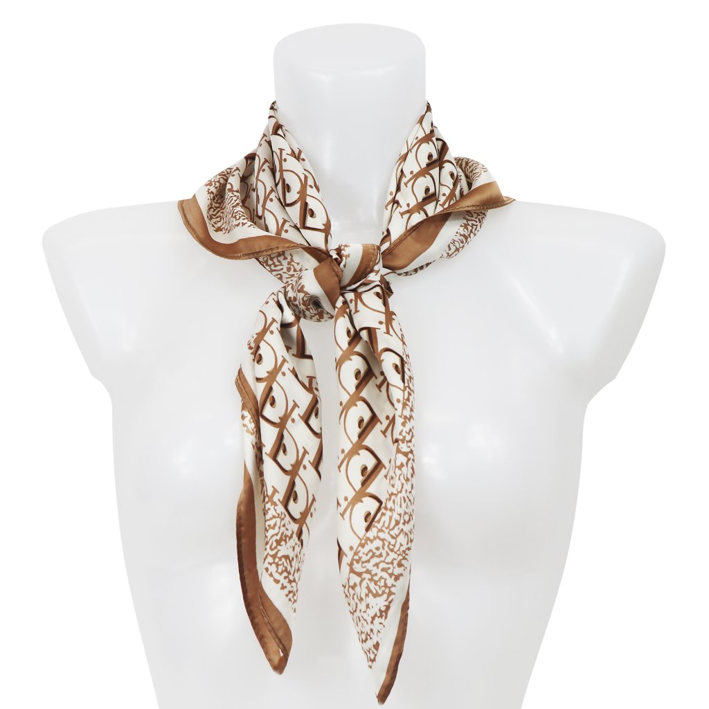 Női selyem négyzet alakú sál YF343-20 légiutas-kísérő Di betűnyomással - barna színű 7200535-2