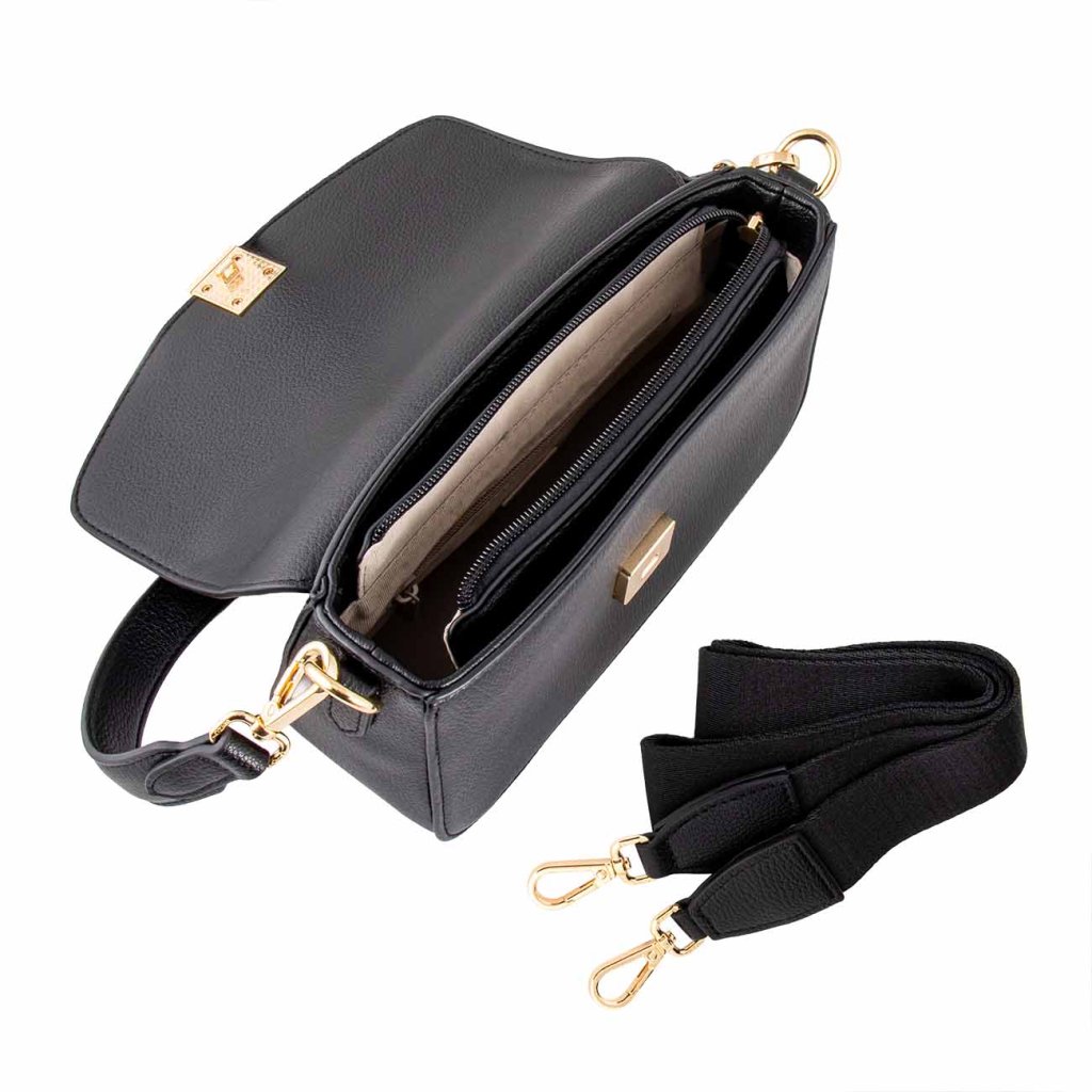A csomag két pántot tartalmaz – egy rövidebb, fix pántot az elegáns vállon viseléshez, és egy hosszabb, állítható pántot a kényelmes keresztpántos viselethez.