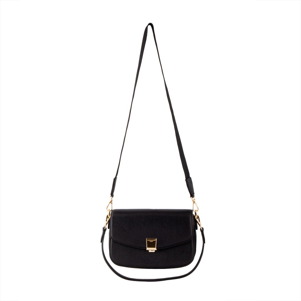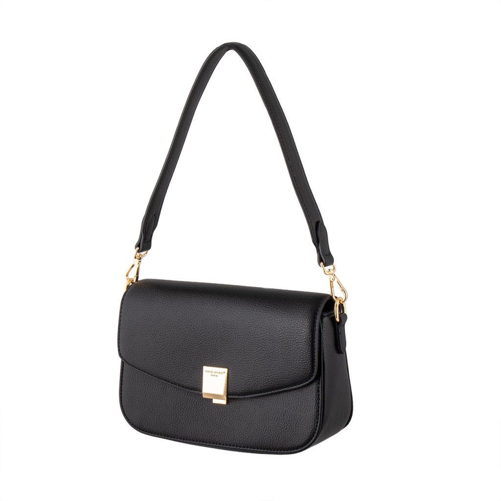 Stílusos női kézitáska David Jones Paris elegáns kivitelben tökéletes választás mindennapi viseletre, mind alkalmi eseményekre. Az időtlen dizájnt arany fém kiegészítők és a hajtókán található visszafogott márkalogó egészíti ki.