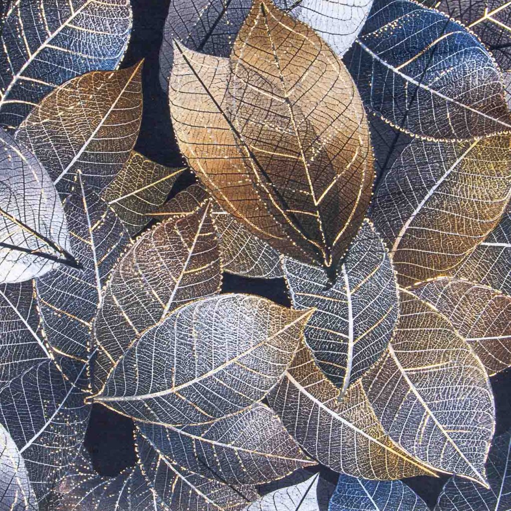 Az elegáns, fekete, szürke és arany árnyalatú sál időtlen és luxus hatást kelt. Az arany nyomat gyönyörűen kiemeli a levelek szerkezetét, és univerzális kiegészítővé teszi ezt a darabot, amelyet bármilyen öltözékhez használhatsz.