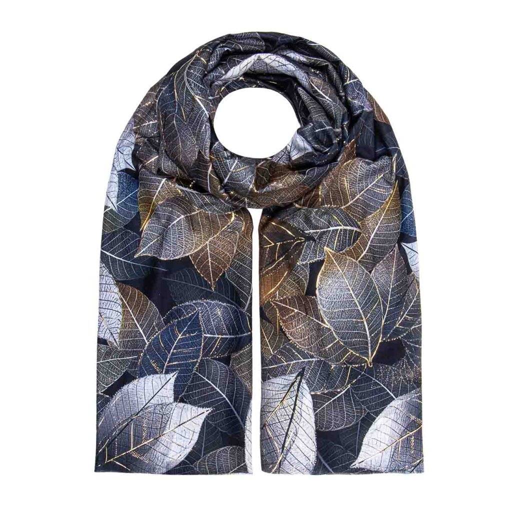 Női téglalap alakú feketéskék kendő - barna levelek 7200663-7