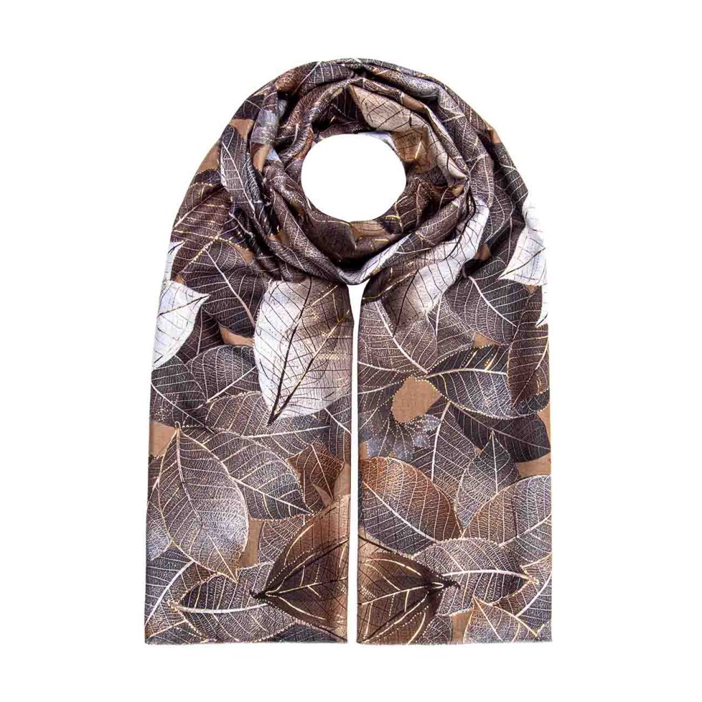 Női téglalap alakú sál 3015-46 arany szálakkal, barna színű 7200663-4