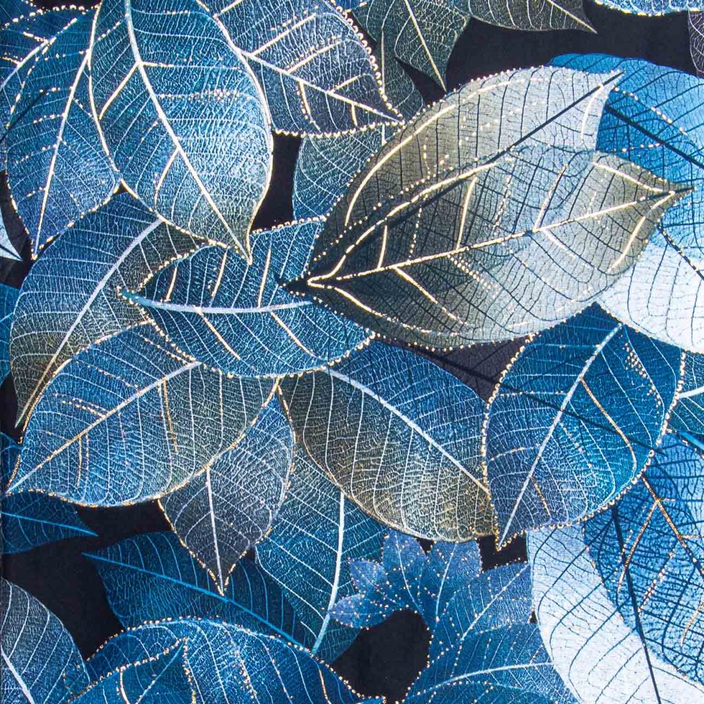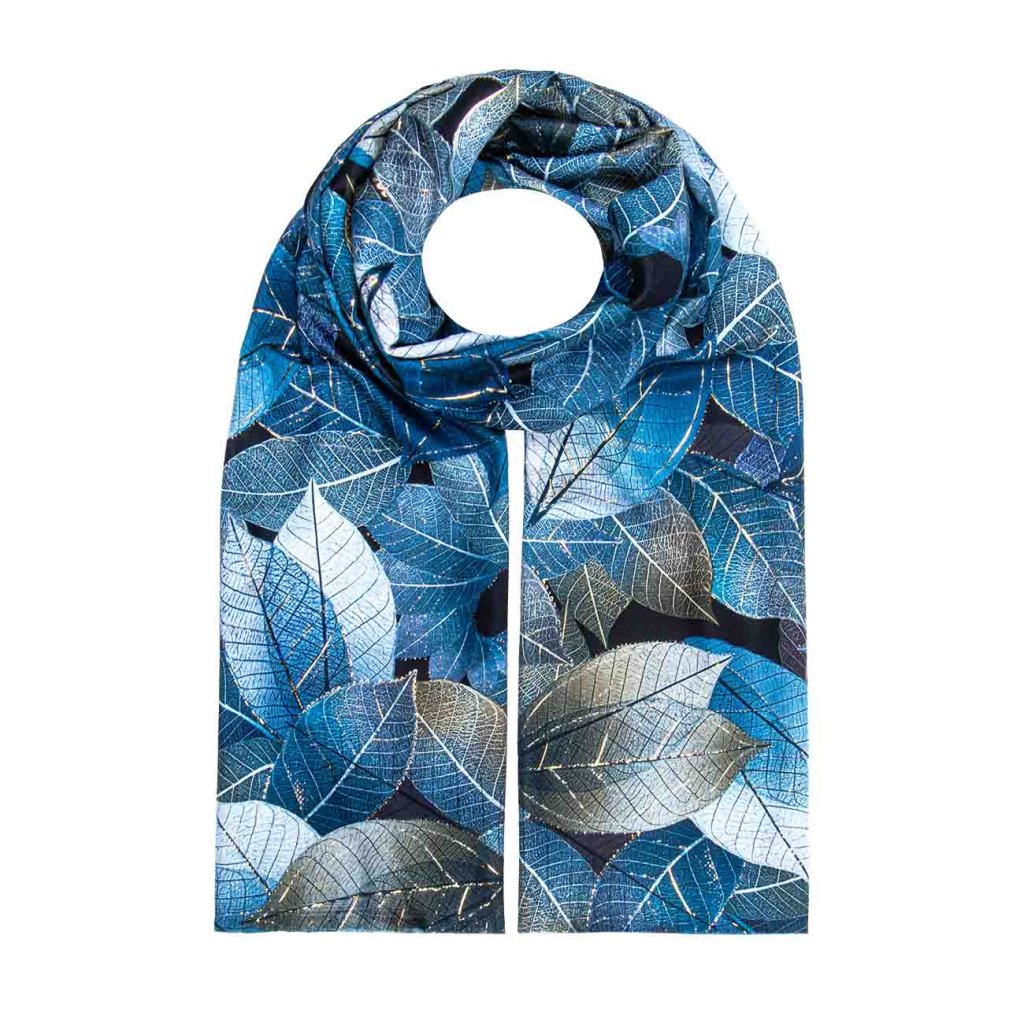 Női téglalap alakú sál 3015-46 levelekkel, arany szállal, kék színű 7200663-2