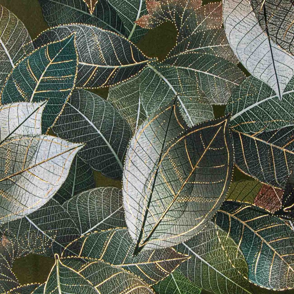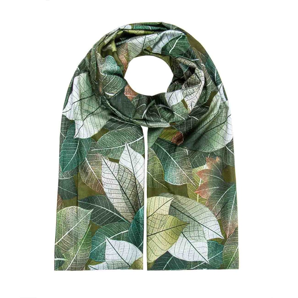 Női téglalap alakú sál 3015-46 levelekkel, arany szállal, zöld színű 7200663-3