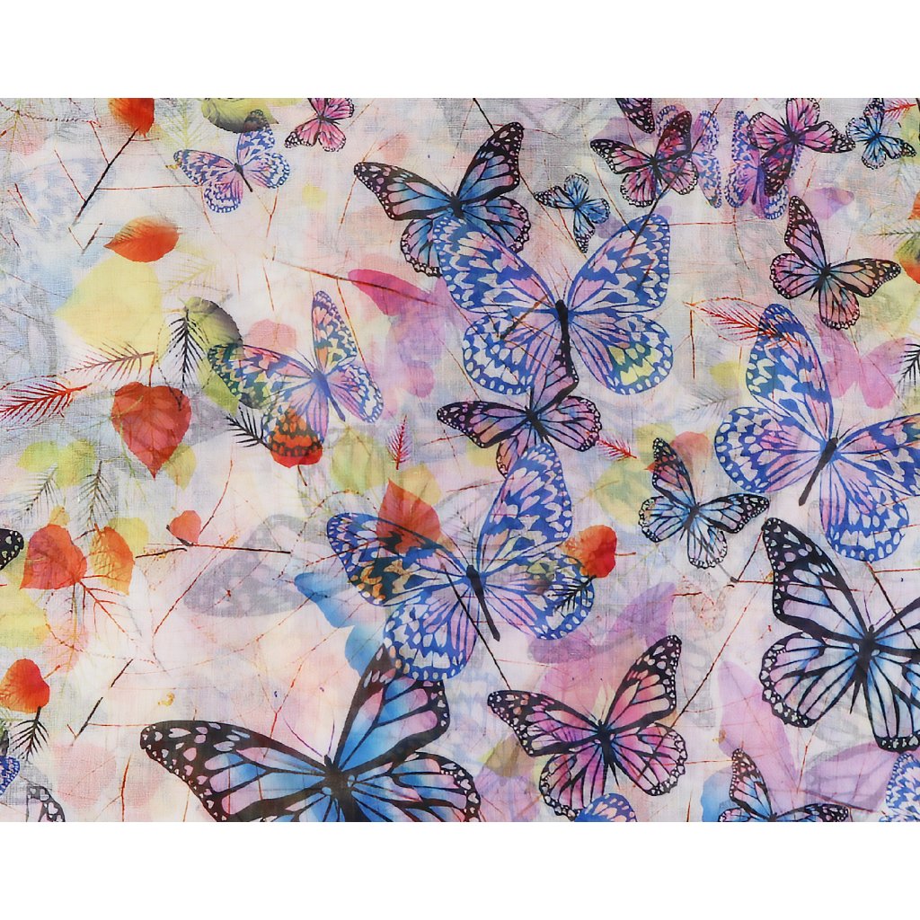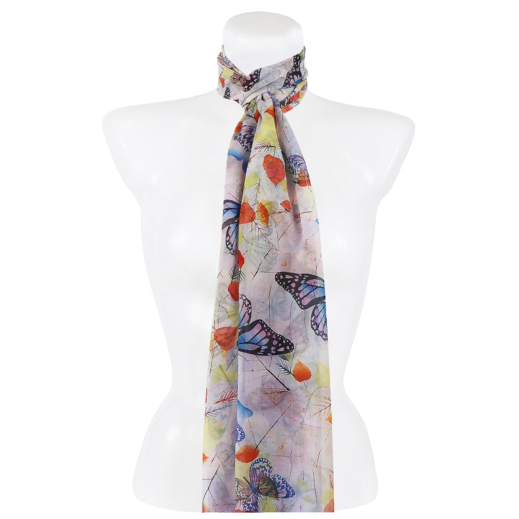 Női téglalap alakú sál 36504 pillangómintával, fehér színű 7200636-4