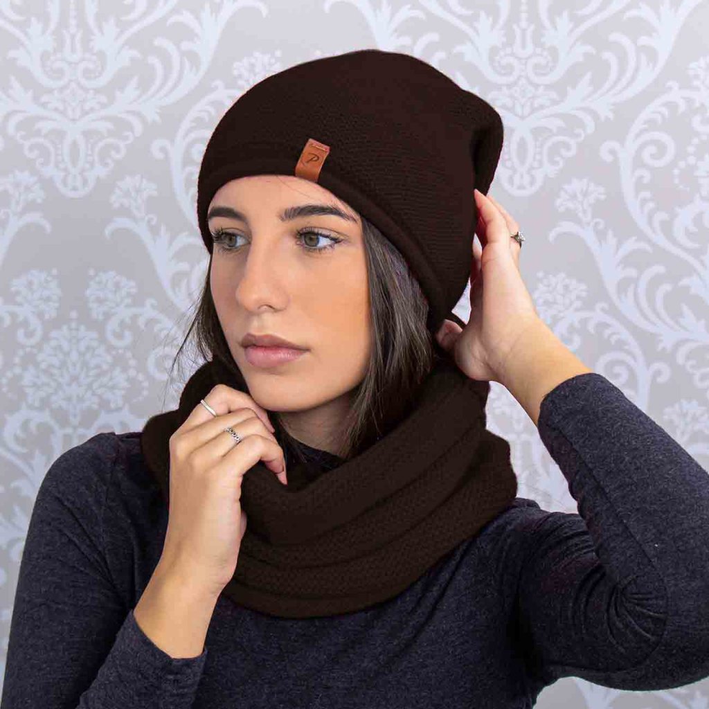 Női téli szett Mark - sapka és sálgallér, kávébarna színben