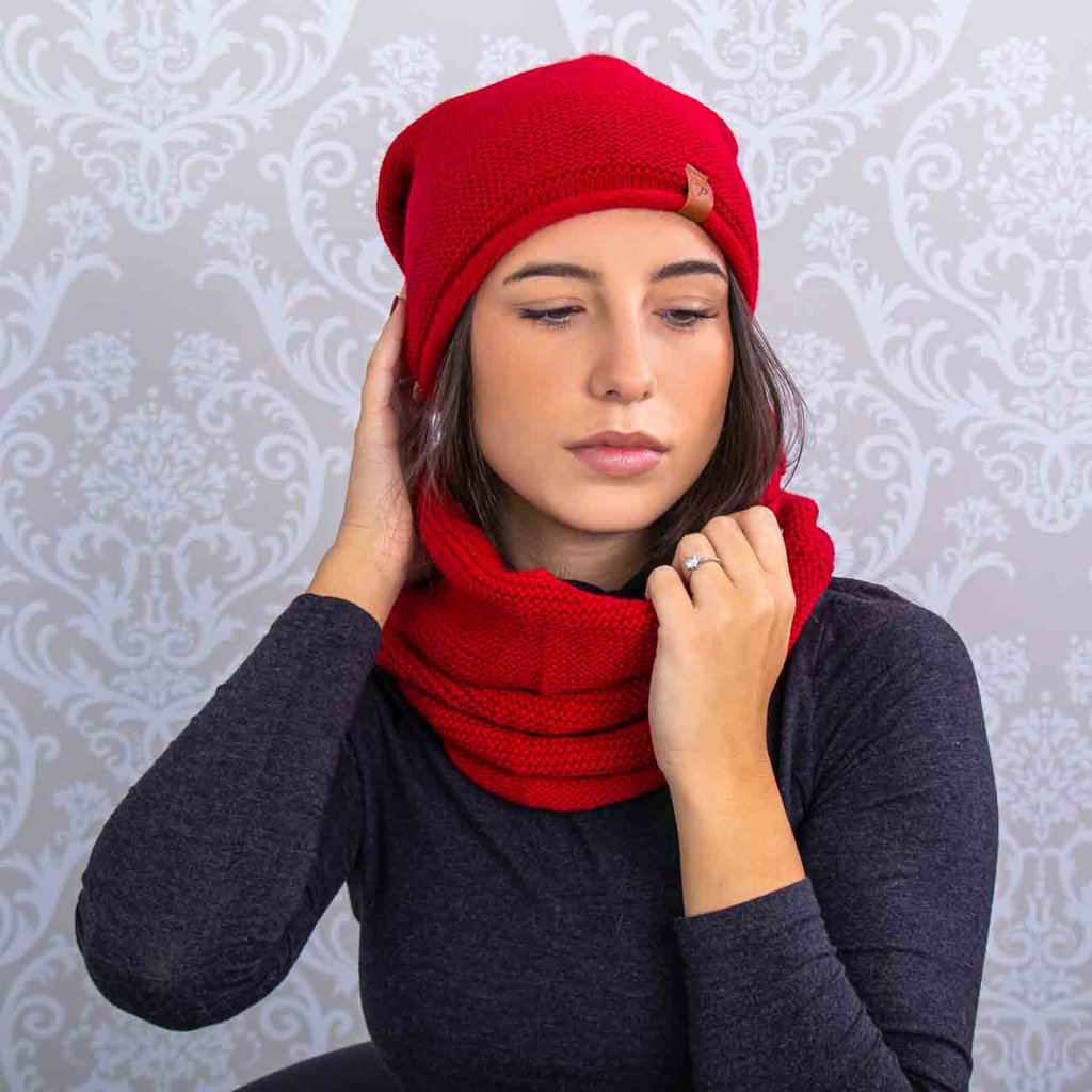 Női téli szett, sapka és alagút Mark - piros 7100331-1