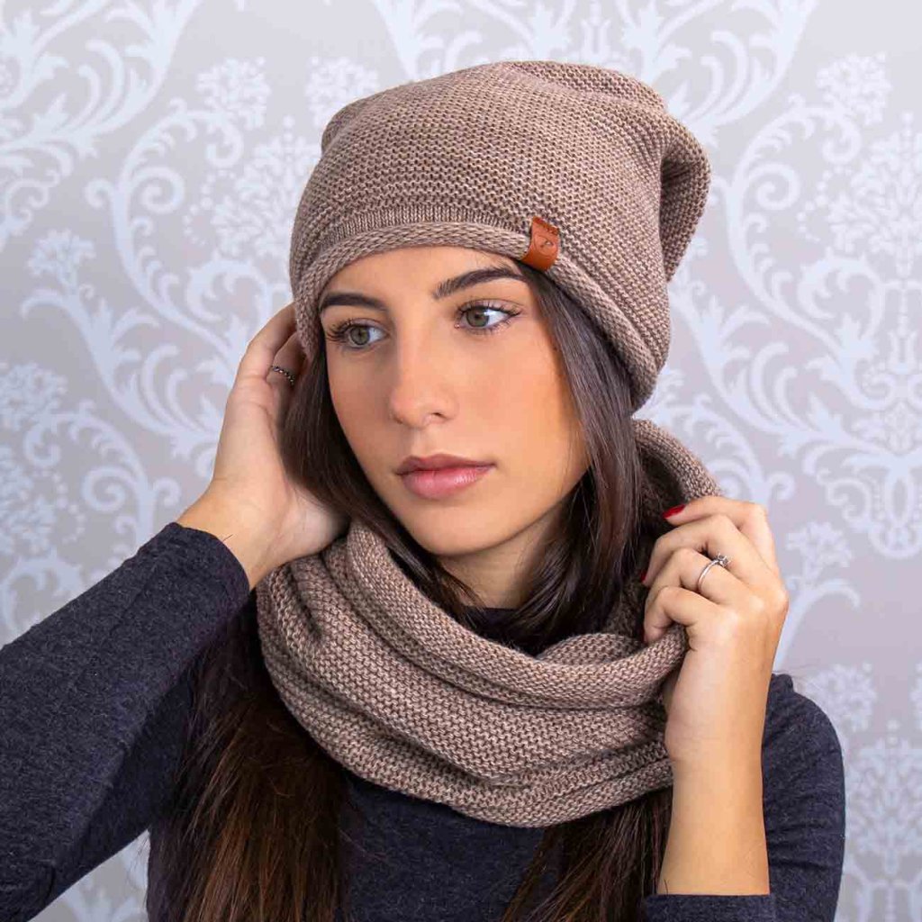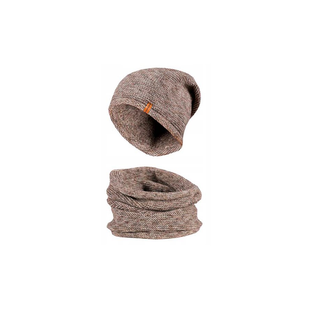 Női téli szett, sapka és alagút Mark - sötétbarna és fehér 7100331-10