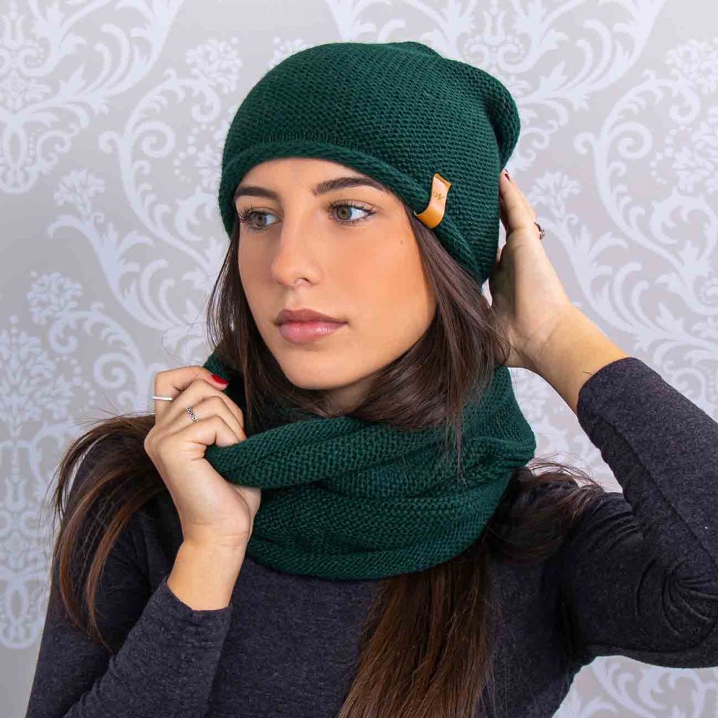 Női téli szett, sapka és alagút Mark - sötétzöld 7100331-5
