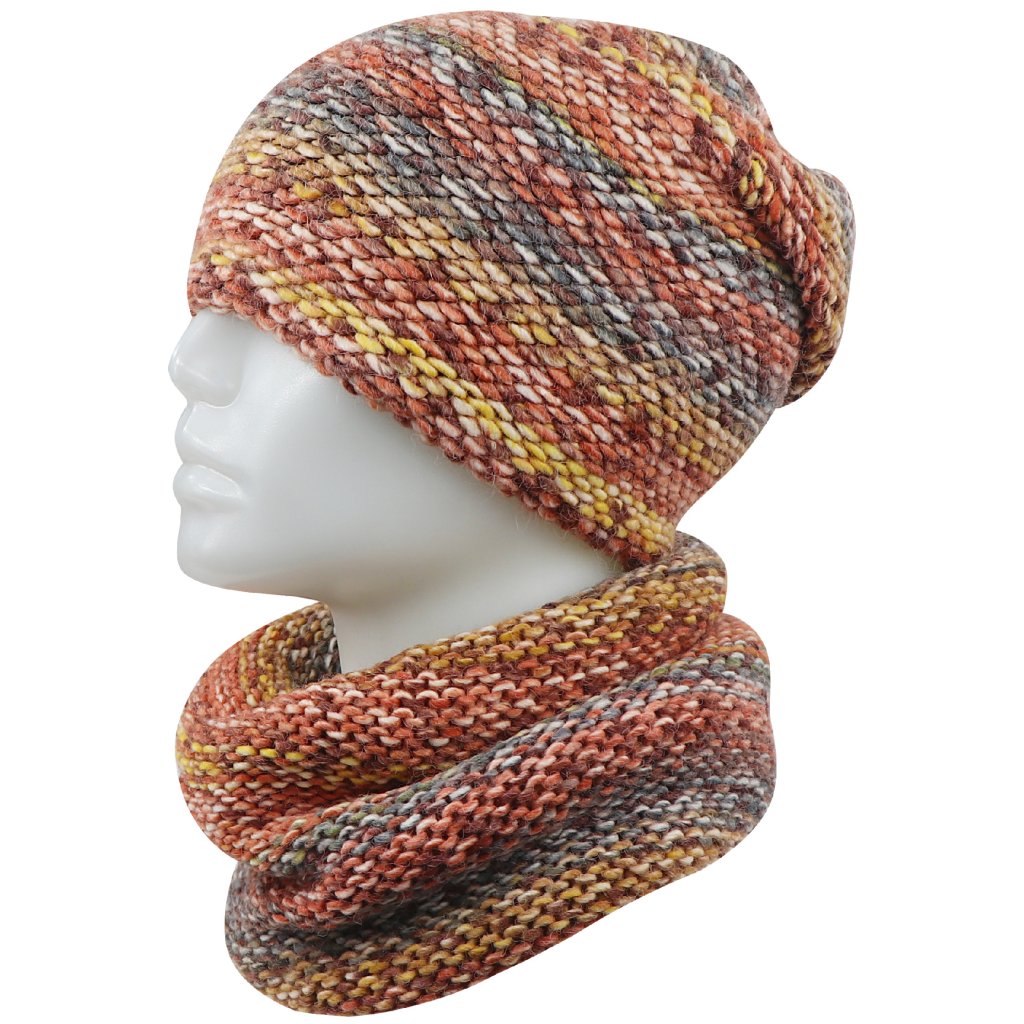 Női téli szett WROBI - sapka és sál, narancs-barna melírozással