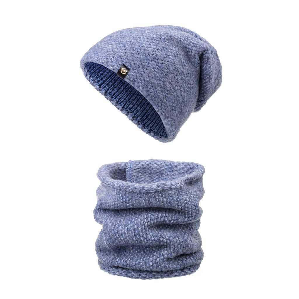 Női téli szett WROBI - sapka és sálgallér, kék színű