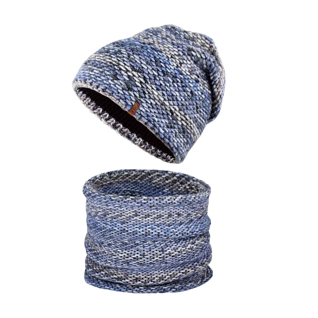 Női téli WROBI szett - sapka és sálgallér, kék melír