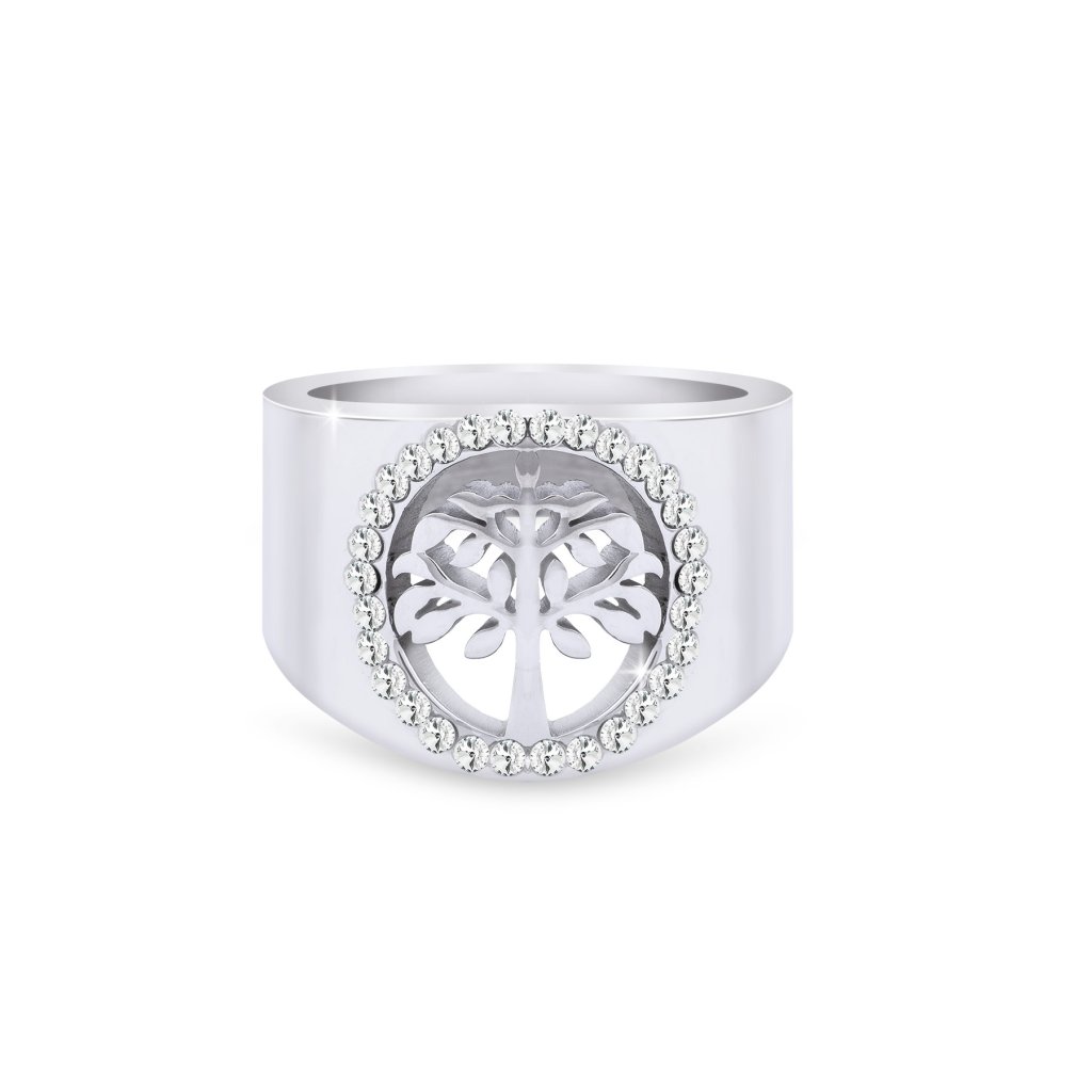 Női tömör sebészeti acél gyűrű, az élet fája cirkóniával.