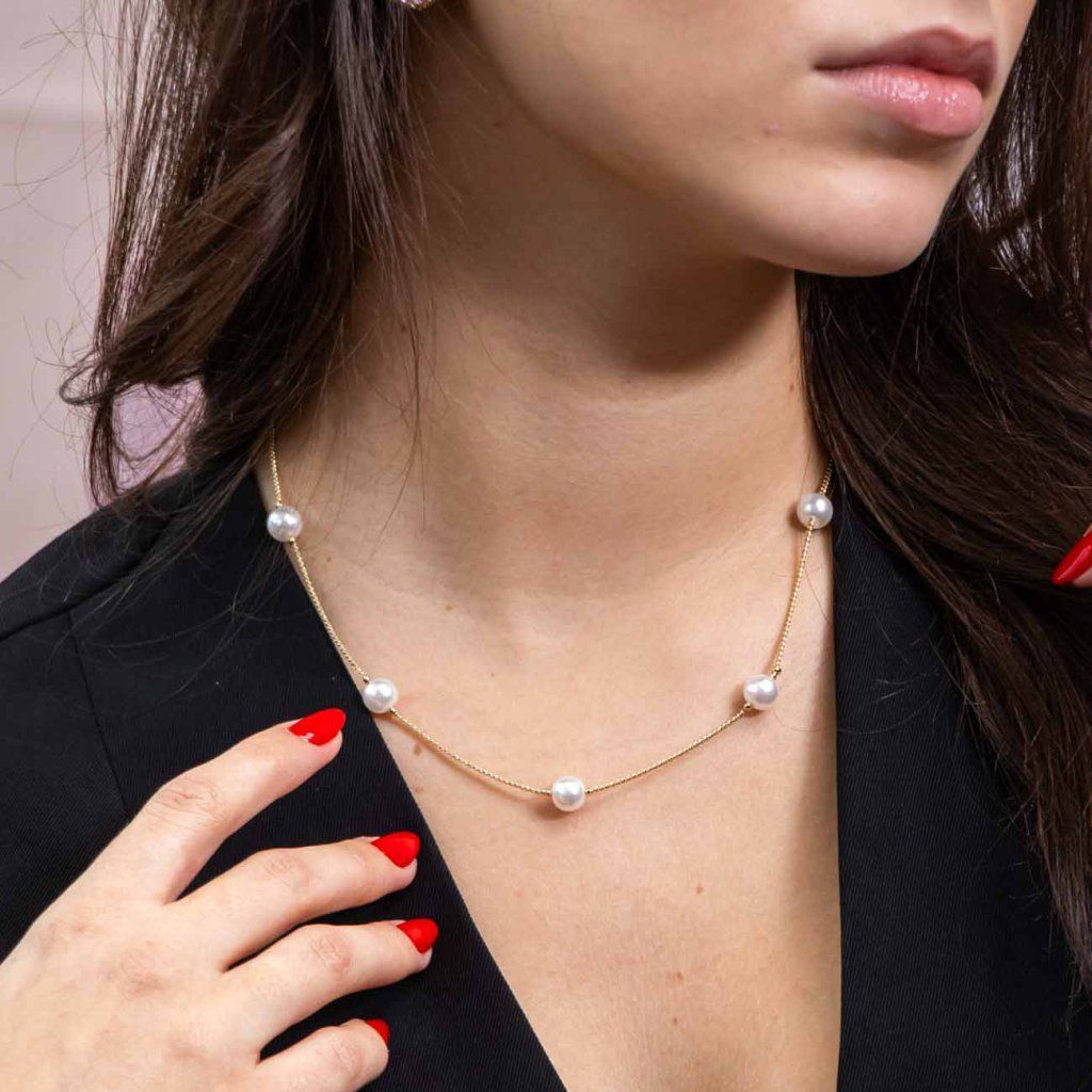 Elegáns aranyozott lánc, szabályosan elhelyezett gyöngyökkel díszítve, időtlen kiegészítő, amely finomsággal és stílussal bűvöl el. A finom gyöngyök az arany tónussal kombinálva luxus és ízléses hatást keltenek – tökéletesen kiegészítik a mindennapi viseletet és az esti ruhát egyaránt.
