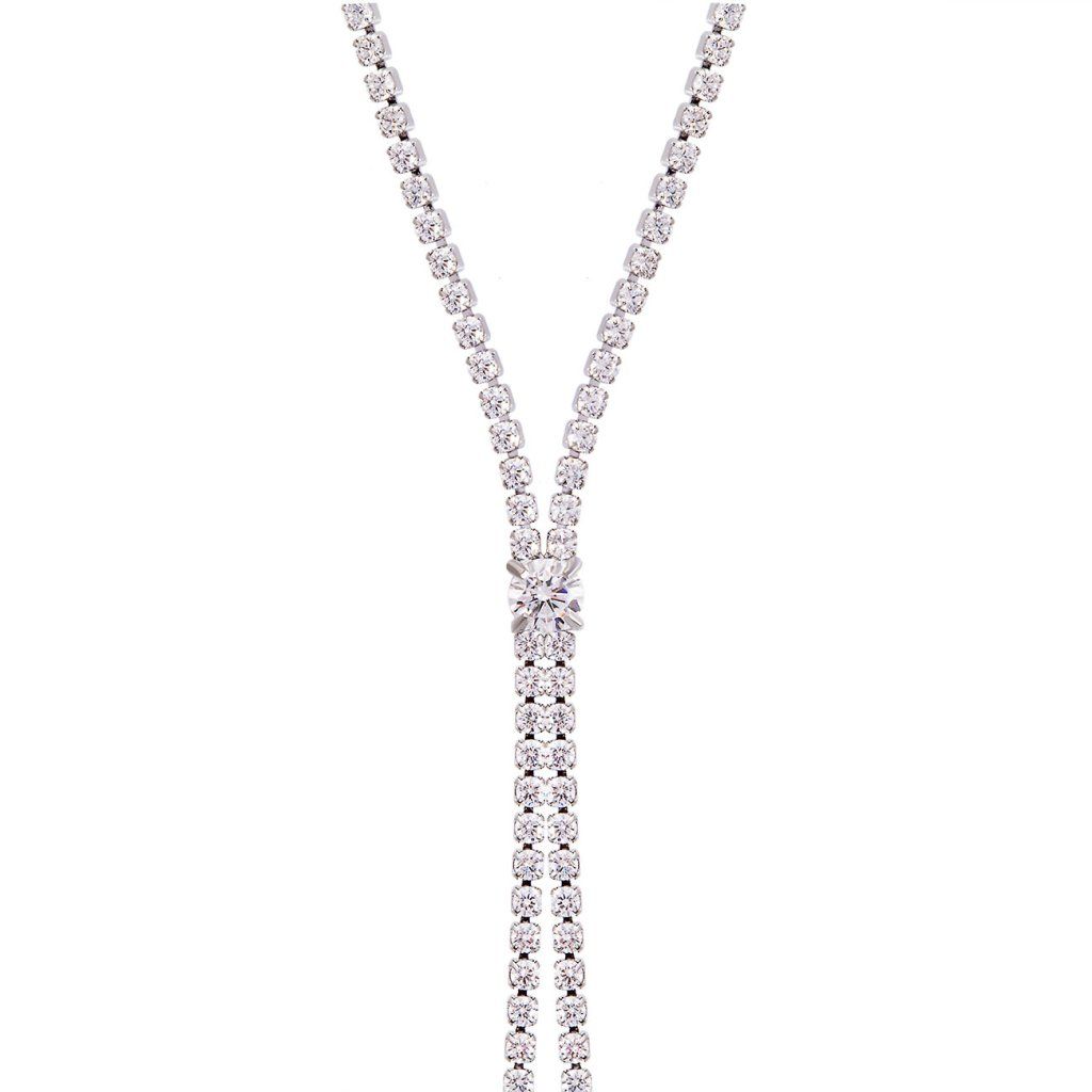 Ragyogó Y nyaklánc sebészeti acélból, cirkóniákkal. Elegáns hosszú medál, állítható hossz és időtlen dizájn kivételes pillanatokra.