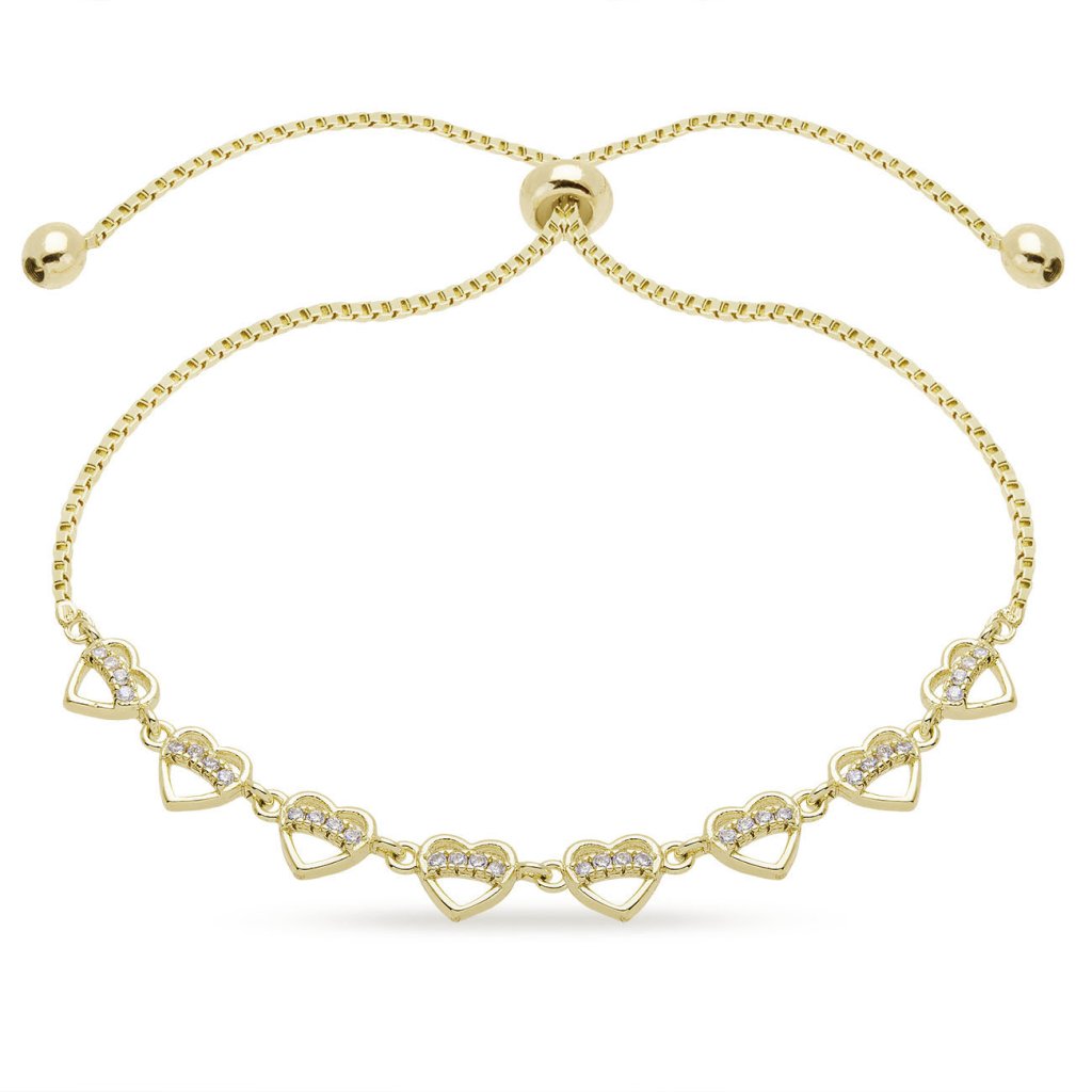 Aranyozott 14 k arany karkötő cirkóniákkal díszített szívekkel.