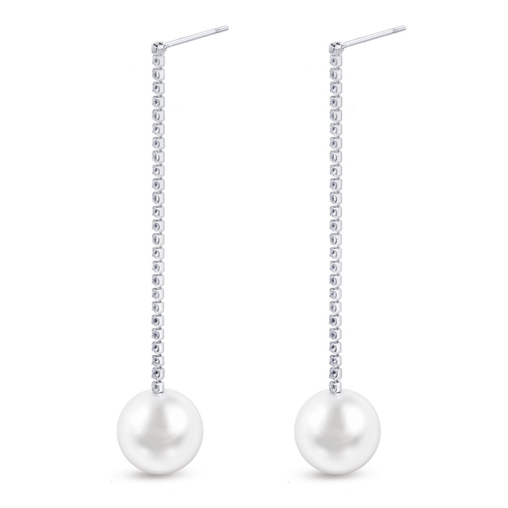 A kifinomult, függő fülbevaló a cirkónium vonal tiszta eleganciáját ötvözi a gyöngy időtlen szépségével. A vékony, csillogó apró cirkónium csík finom függőleges hatást kelt, amely természetesen hosszabbítja a nyak vonalát, míg az alsó részén található gyöngy kifinomult és luxus akcentust kölcsönöz az ékszernek. A tűs kapocsnak köszönhetően a fülbevaló biztonságosan illeszkedik és egész nap kényelmesen viselhető. Ideális választás ünnepélyes alkalmakra és elegáns stílushoz egyaránt.