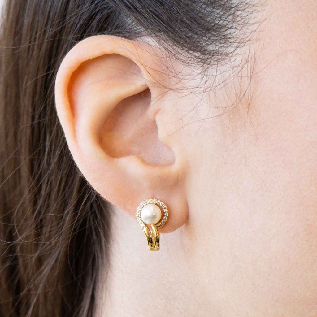 Hangsúlyozza természetes eleganciáját egy olyan ékszerrel, amely a finomságot és a ragyogó részleteket egyesíti. Ezek a gyöngy elemmel és precízen beágyazott cirkóniákkal készült fülbevalók időtlenek tűnnek, és öltözködéséhez összetett érintést adnak.
