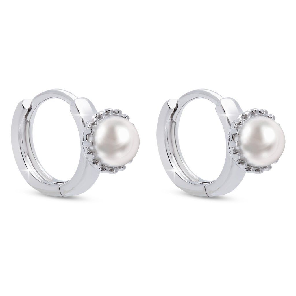 Ródiummal bevont fülbevaló Gyönggyel ellátott kis karika. Bármilyen öltözékhez tisztességesen illeszkedik anélkül, hogy elnyomná a többi divatos kiegészítőt. Ráadásul mindig finom és ápolt megjelenést kölcsönöznek. Ez a termék nem tartalmaz nehézfémeket.