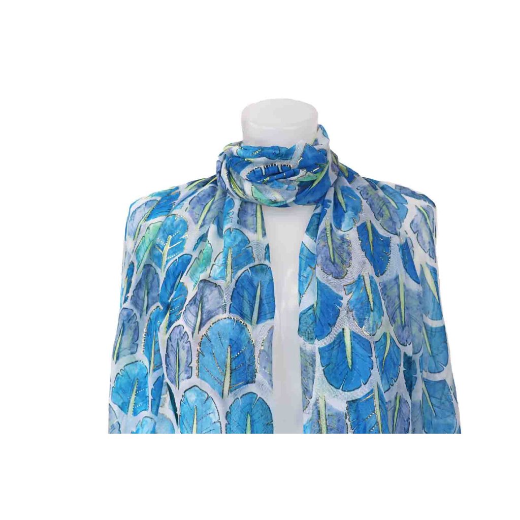 Burkold be magad melegséggel és stílussal a kék leveles sálunkkal! Ez a gyönyörű, könnyű sál gyönyörű kék színű, és finom, tollas levelekből álló mintával rendelkezik. Kiváló minőségű anyagokból készült, puha tapintású és ideális minden évszakban. Akár kiöltözöl, akár egy hűvös napon tartod magad otthonosan, ez a sál elegánsan kiegészíti bármilyen öltözékedet. Ne hagyja ki a lehetőséget, hogy ezt az egyedi darabot a gyűjteményébe illessze - rendeljen most!