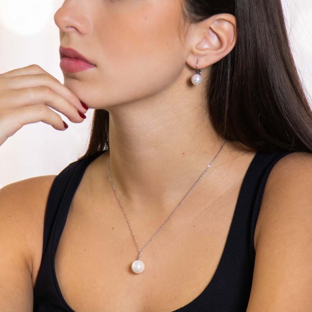 Sebészeti acél szett fülbevaló+nyaklánc, gyöngy-fehér 3001017