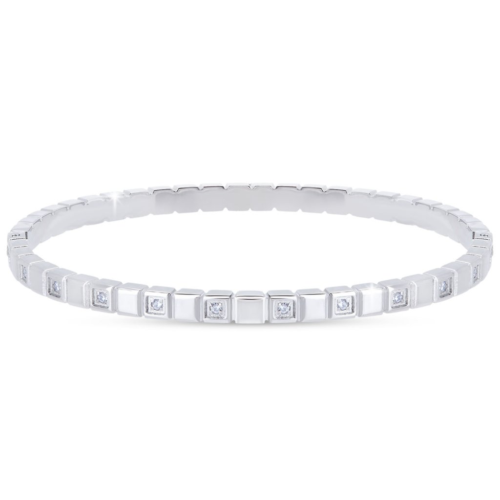 A keskeny, szögletes szemes és finom, áttetsző cirkónia kövekkel díszített karkötő modern és időtálló ékszer. A letisztult vonalak és a fényes felület kiemelik az elegáns megjelenést, amely könnyen kombinálható más kiegészítőkkel. Stílusos részlet, amely a mindennapi viselet során is felkelti a figyelmet.