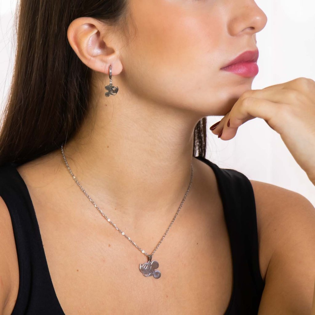 Mickey Mouse sebészeti acél szett, nyaklánc + lógós fülbevaló 135