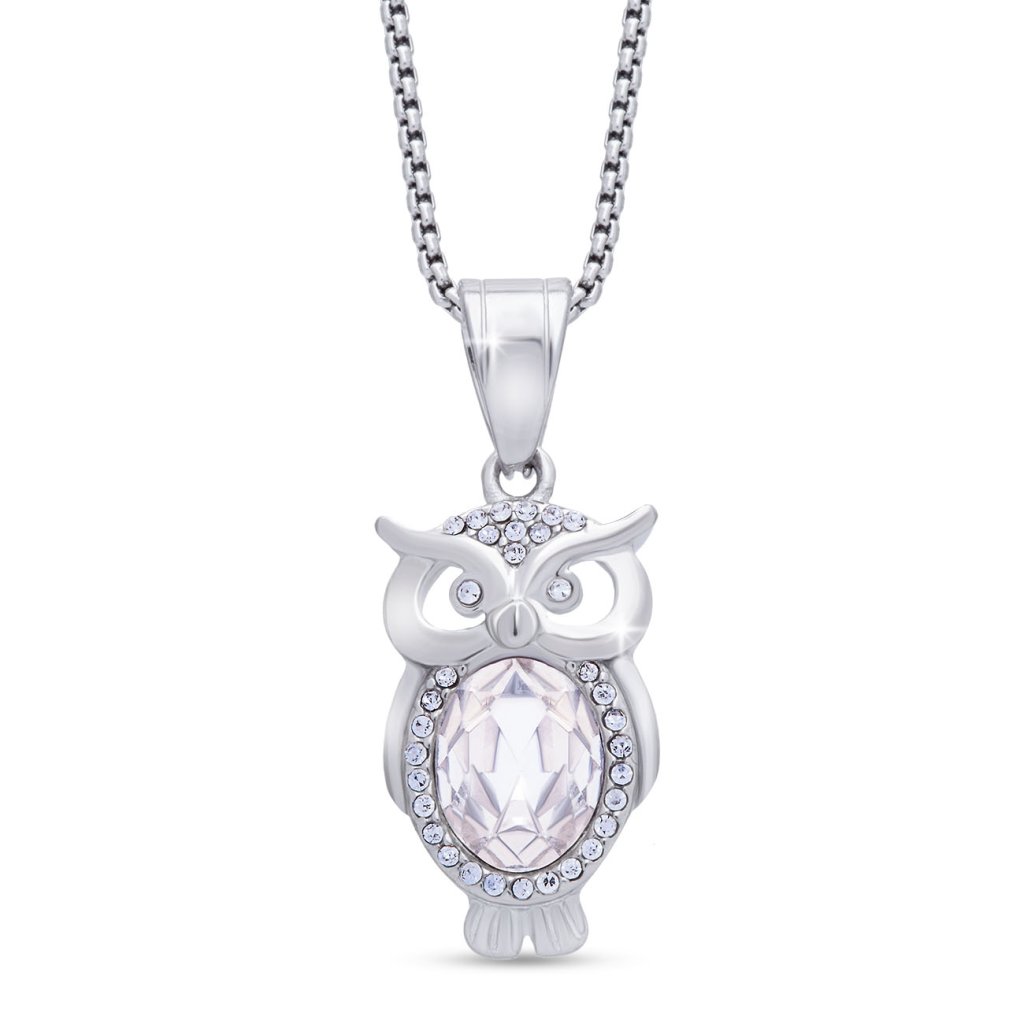 Sebészeti acél nyaklánc cirkónia köves bagoly medállal 2548