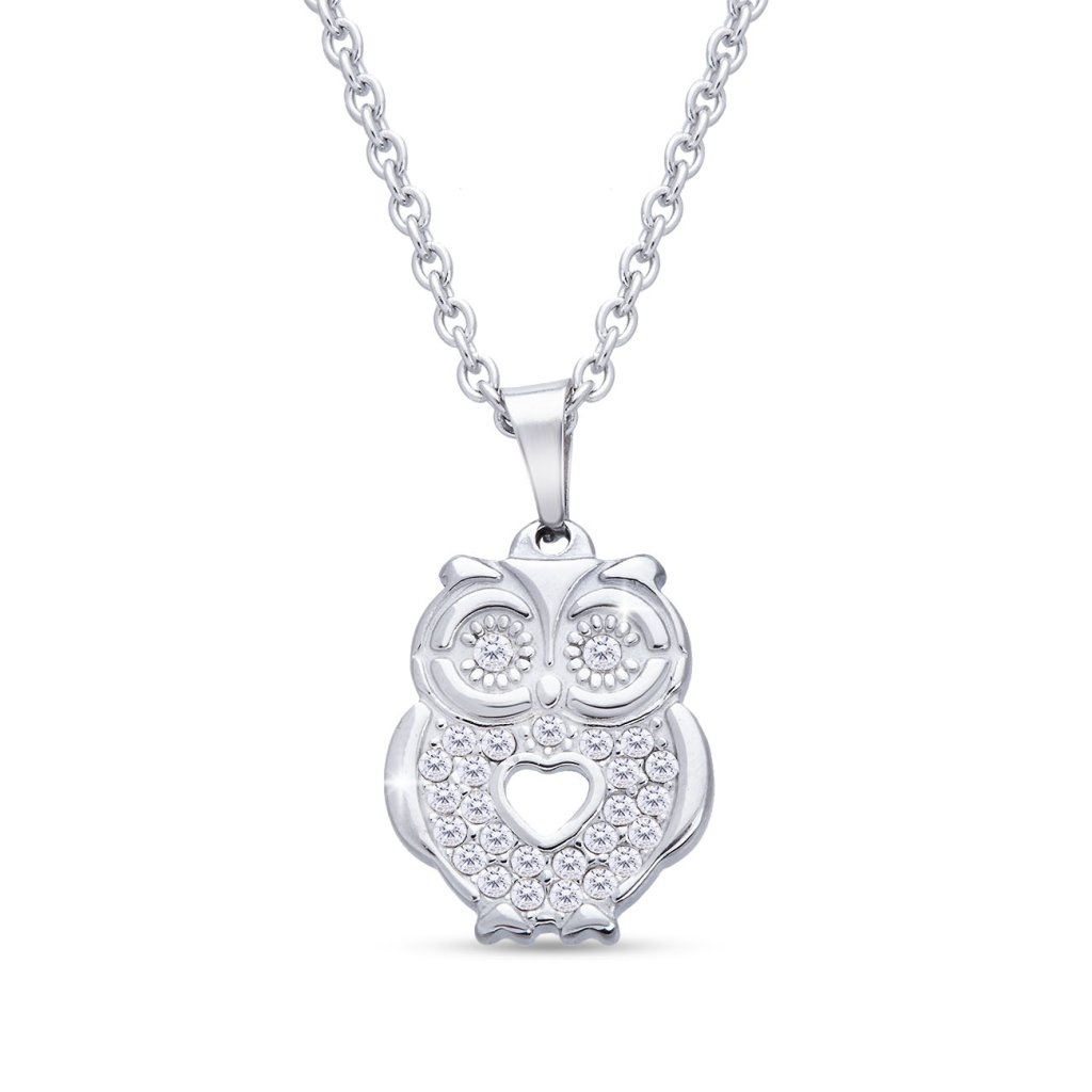 Sebészeti acél nyaklánc cirkóniával kirakott bagoly medállal 2550