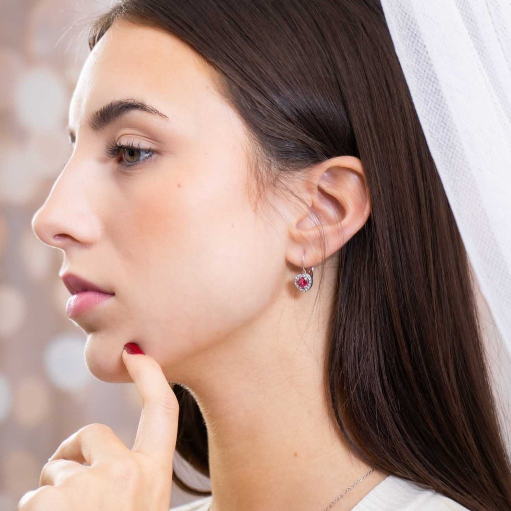 VERONA 306 szett nyaklánc és függő fülbevaló, rózsaszín cirkónia kővel díszített szív