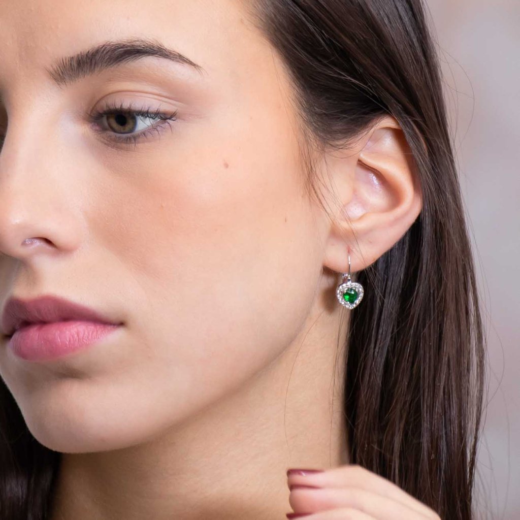 VERONA 307 szett nyaklánc és lógós fülbevaló, zöld cirkóniával díszített szív