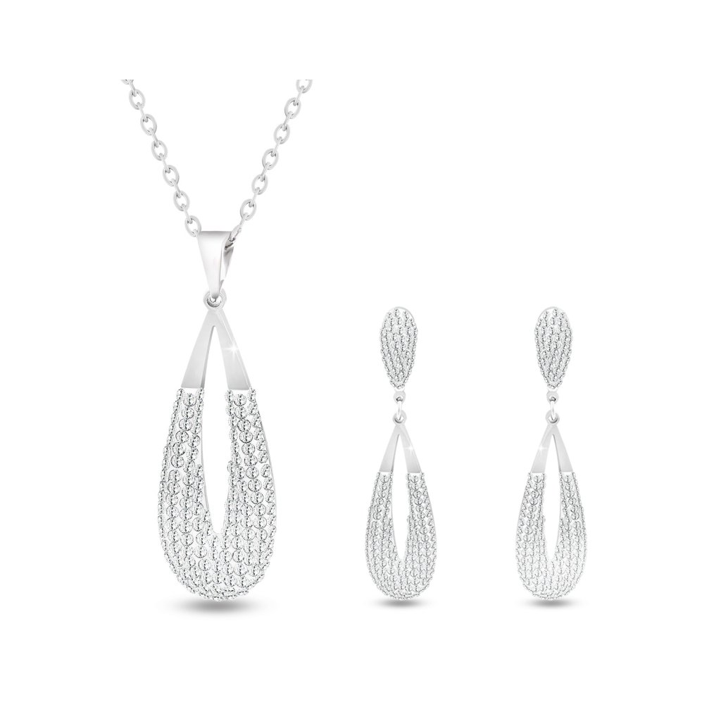 Sebészeti acél szett, fehér aláfestéssel díszített csepp, nyaklánc + függő fülbevaló cirkóniával 224