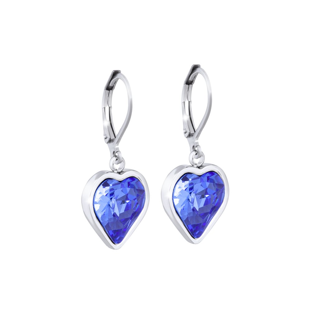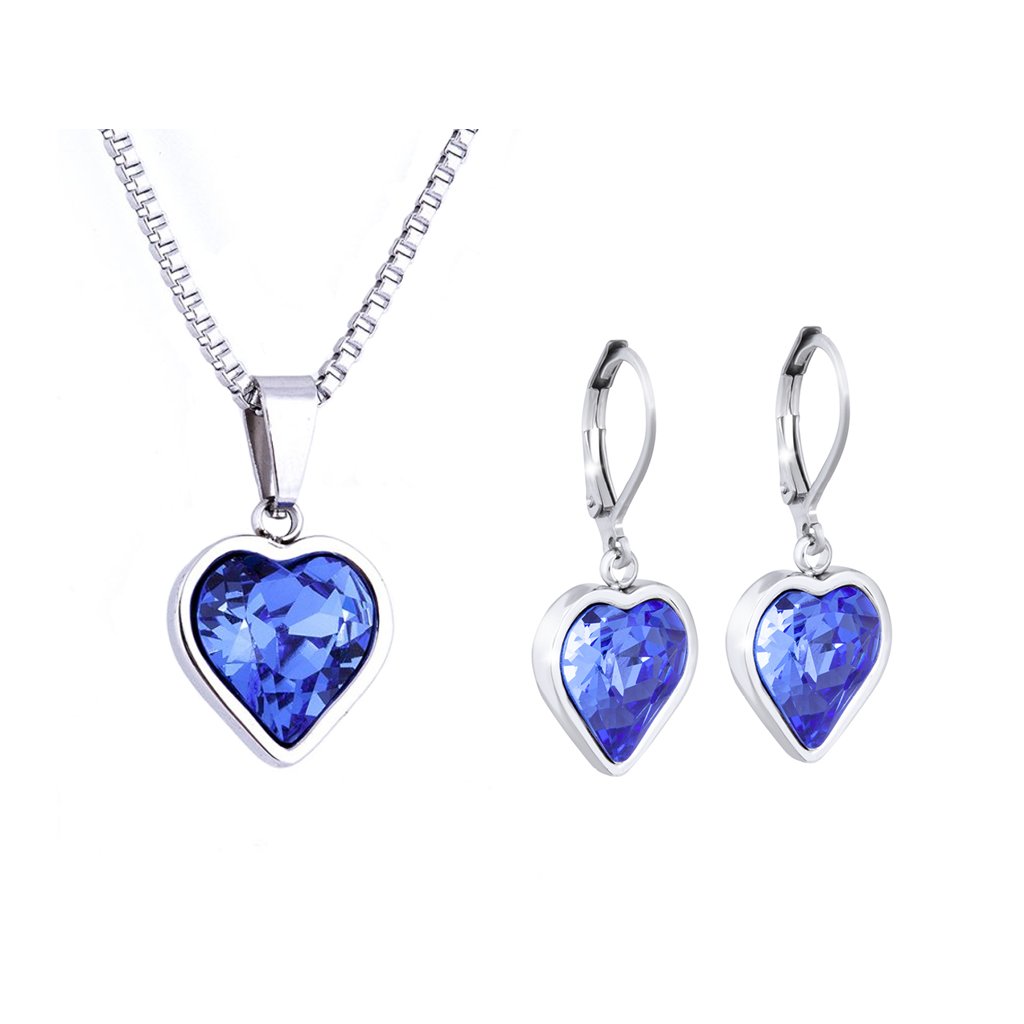 VERONA 0007 Szív alakú, kék színű sebészeti acél szett, lánc + fülbevaló cirkónia kövekkel 100007