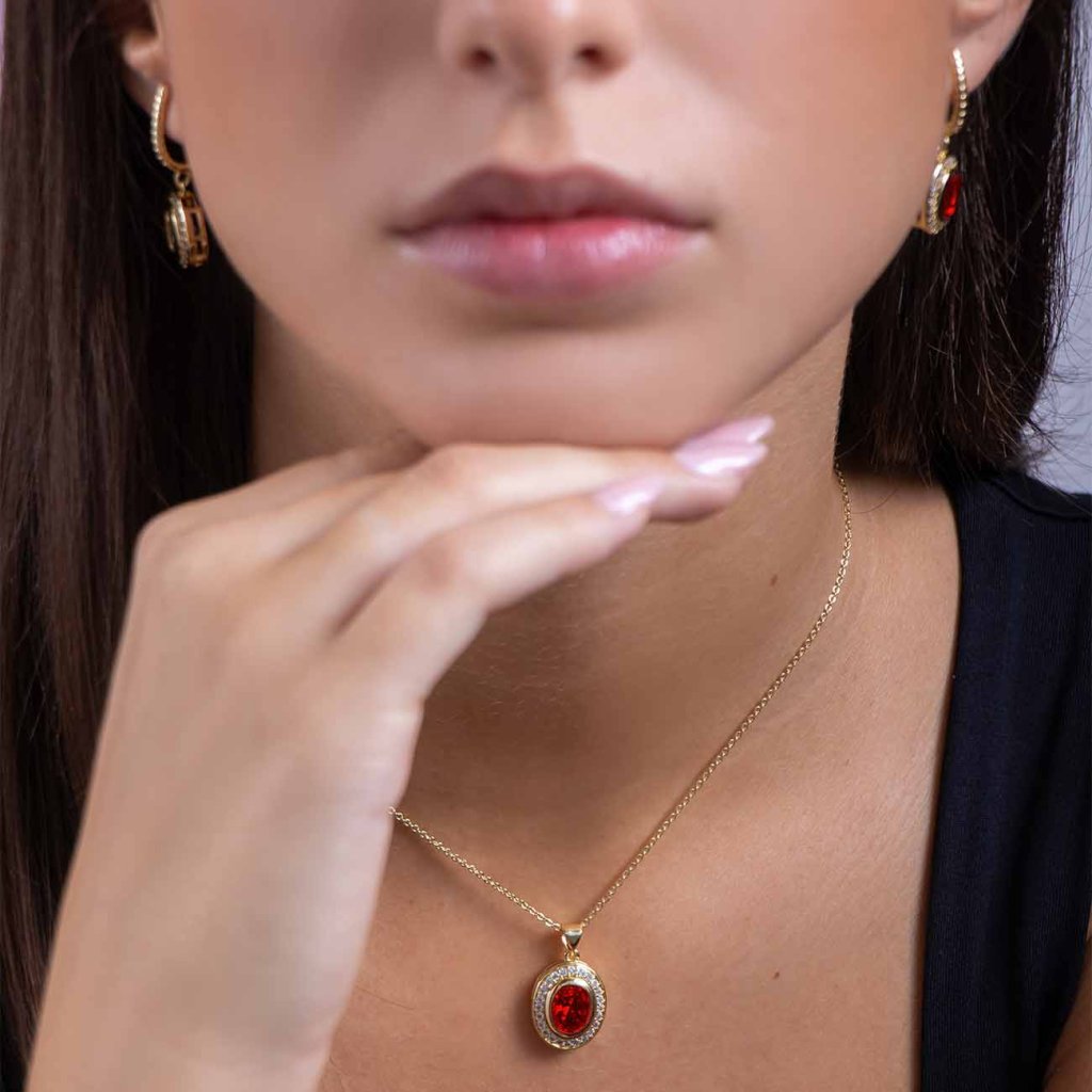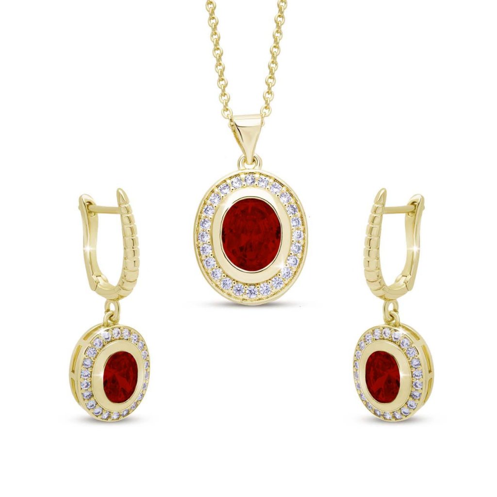 SET 0060-2 Aranyozott ékszerszett – fülbevaló és nyaklánc piros cirkónia kővel