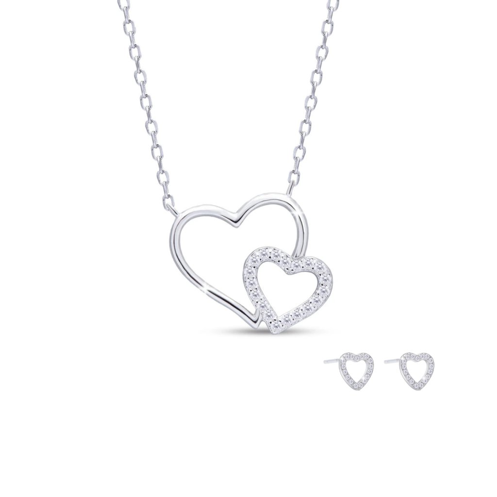 SET 348 Ezüst nyaklánc és fülbevaló szívvel