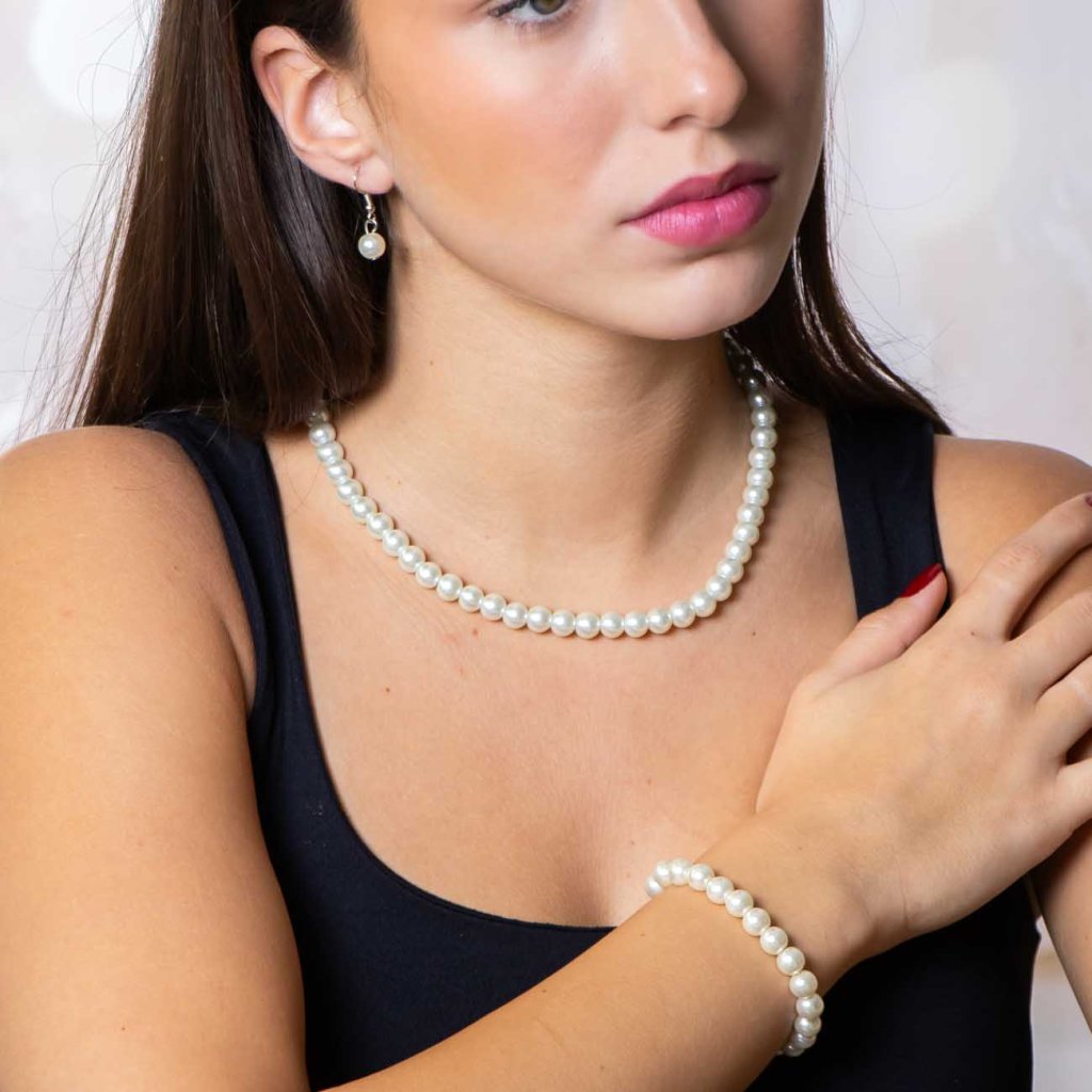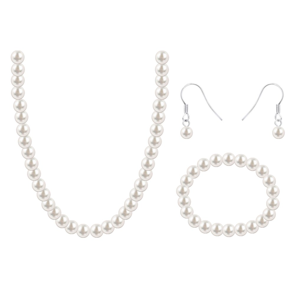 Ékszer fém szett, krémszínű gyöngy, nyaklánc + fülbevaló + karkötő 6000465-1