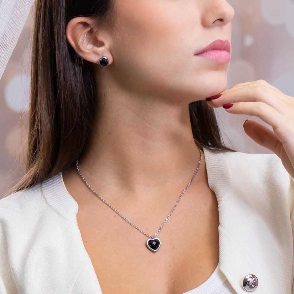VERONA 0023-2 Szett nyaklánc és fülbevaló, szív fekete cirkónia kövekkel