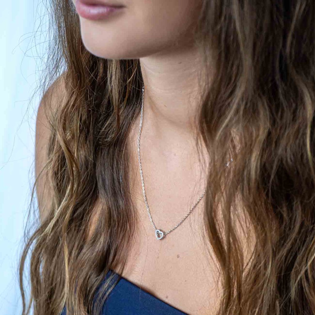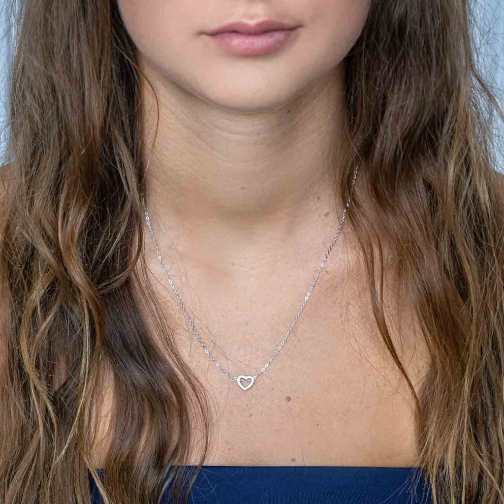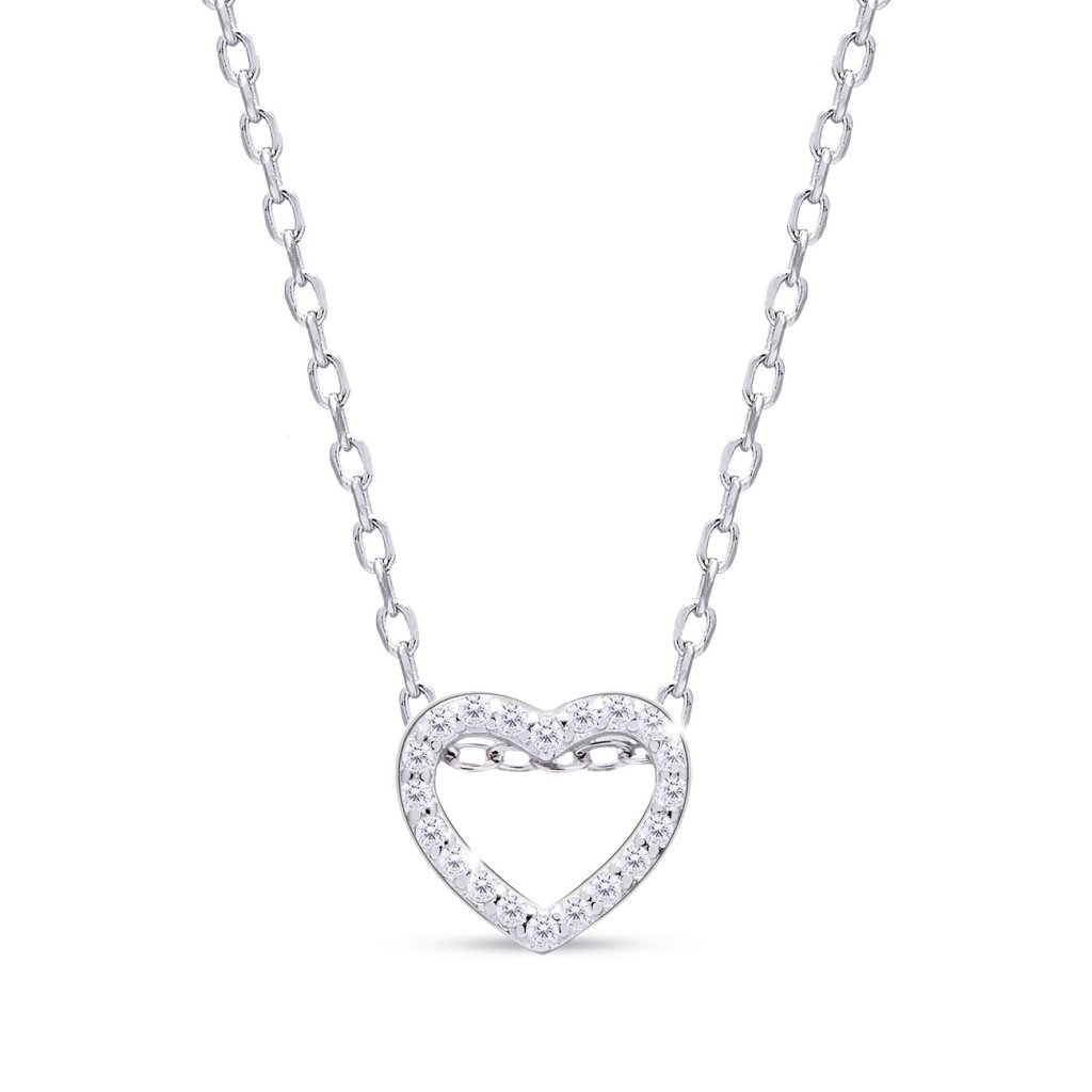Ez a finom nyaklánc egy diszkrét, szív alakú medállal van díszítve, amelyet apró cirkónia kövek ékesítenek, amelyek csodálatosan tükrözik a fényt. A szív szimbólum a szeretetet, a közelséget és az érzést fejezi ki – ideális ajándék egy szeretett személynek, vagy elegáns kiegészítő bármilyen öltözékhez. Letisztult dizájnjának köszönhetően alkalmas mindennapi viseletre és ünnepi alkalmakra is.