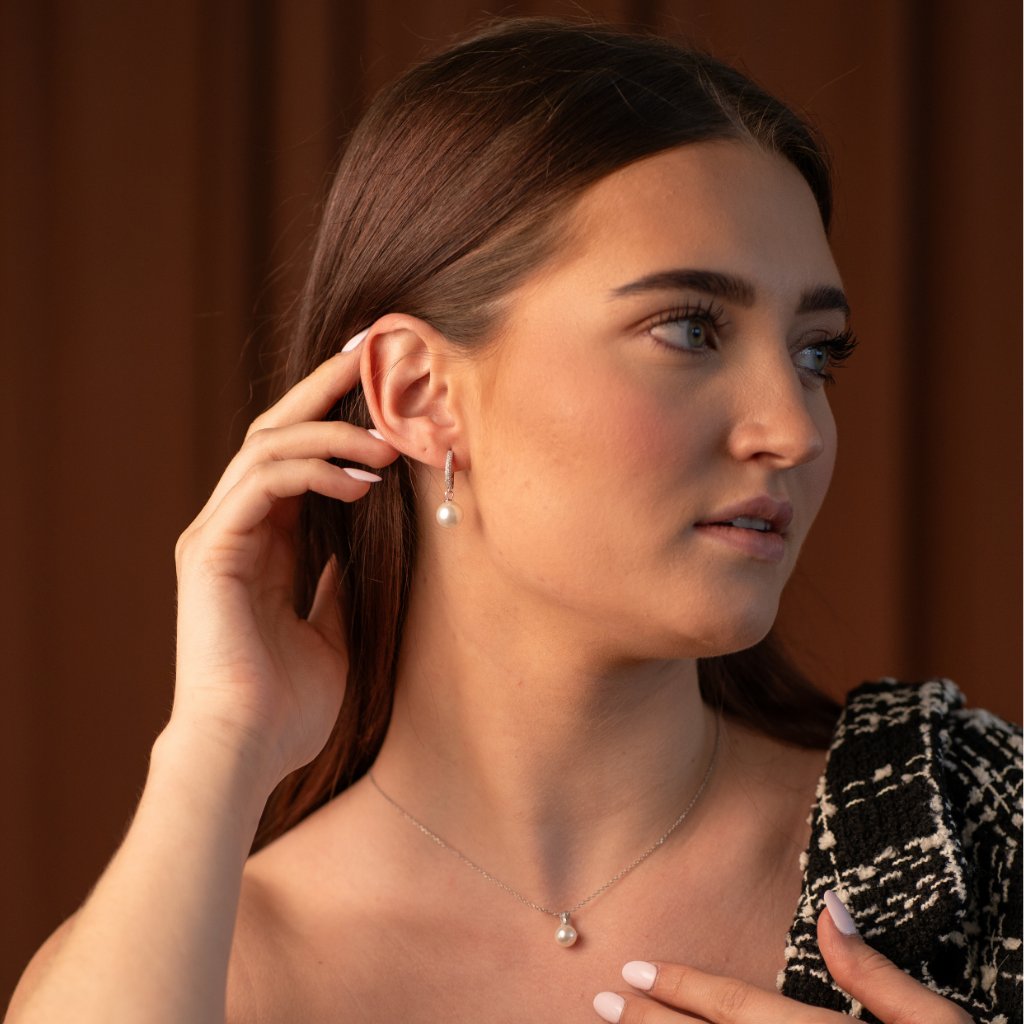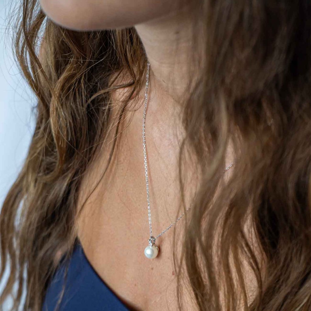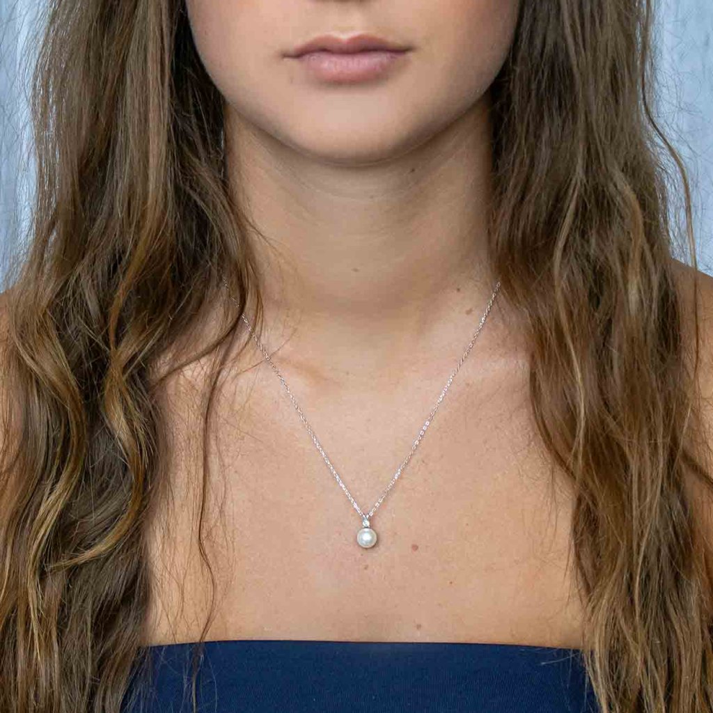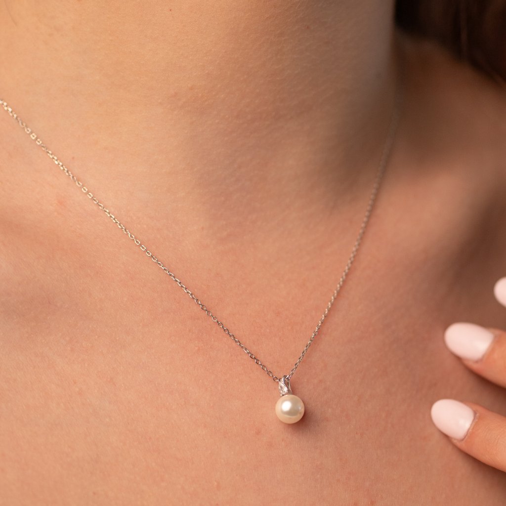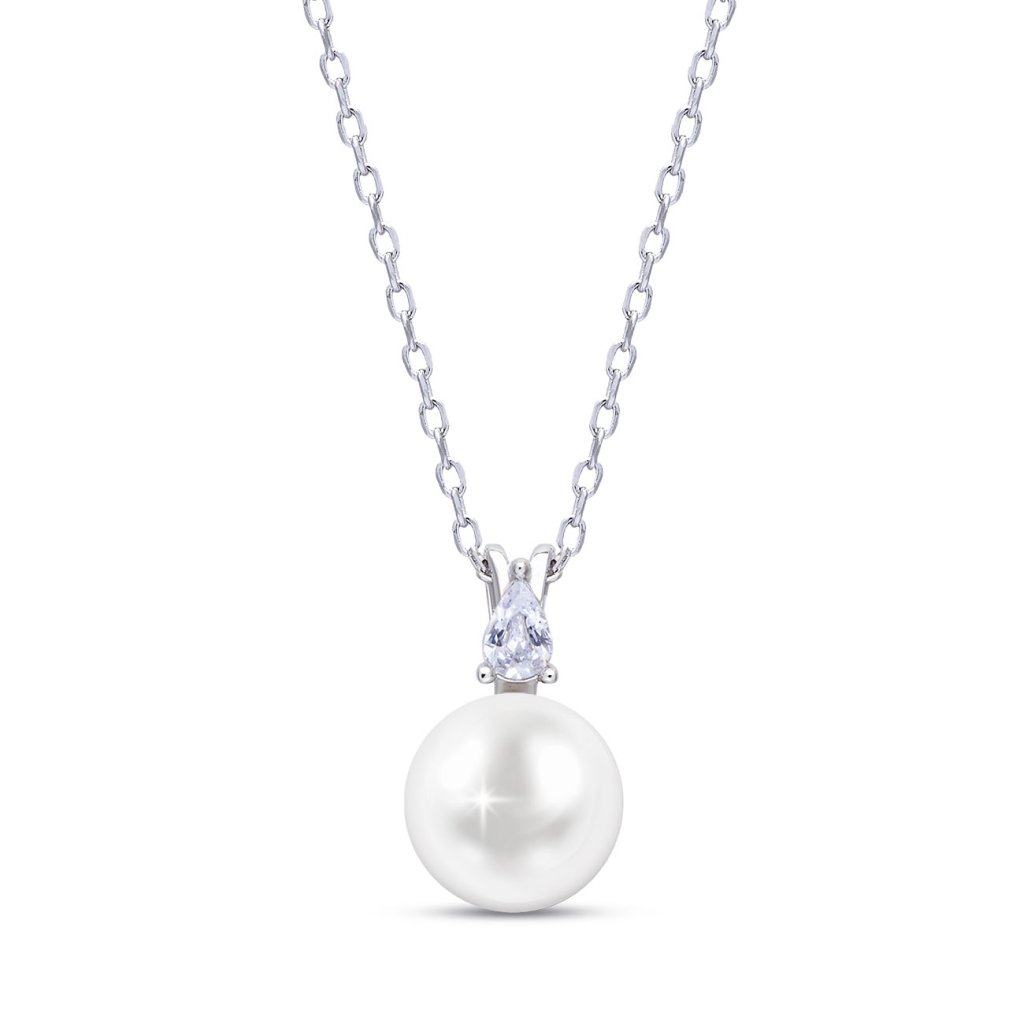 A csepp alakú cirkóniummal díszített, gyöngy medállal ellátott női ezüst nyaklánc egyedi ajándék. Ízlésesen kiegészíti a mindennapi öltözéket, de nagyszerűen illik egy társasági eseményre is.