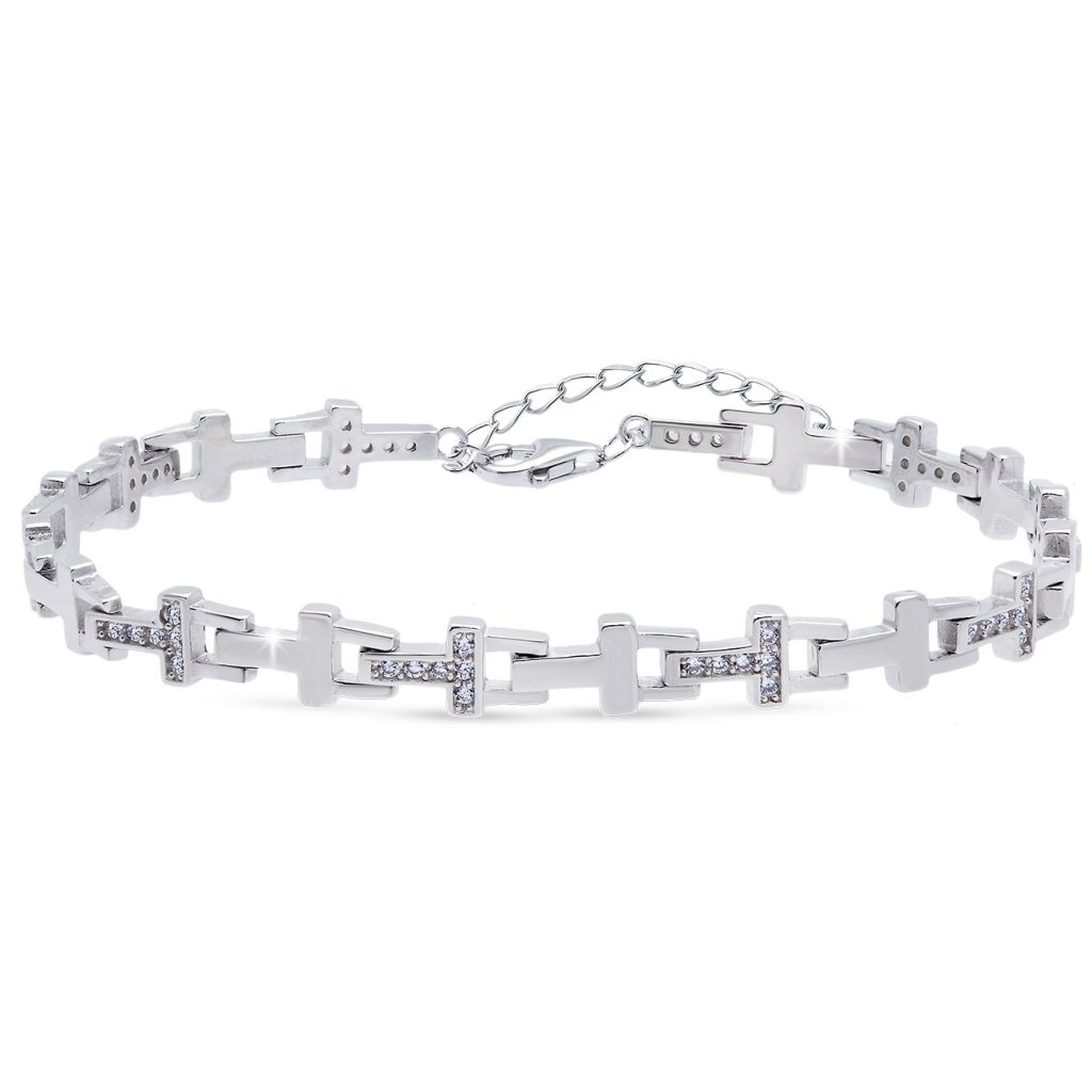 Elegáns ezüst karkötő modern szemes kialakítással és finoman csillogó cirkónia kövekkel. Minden második szemet apró kövek díszítenek, amelyek luxus megjelenést kölcsönöznek az ékszernek.