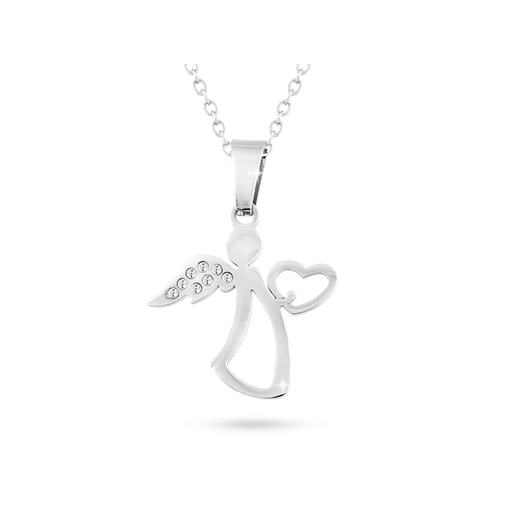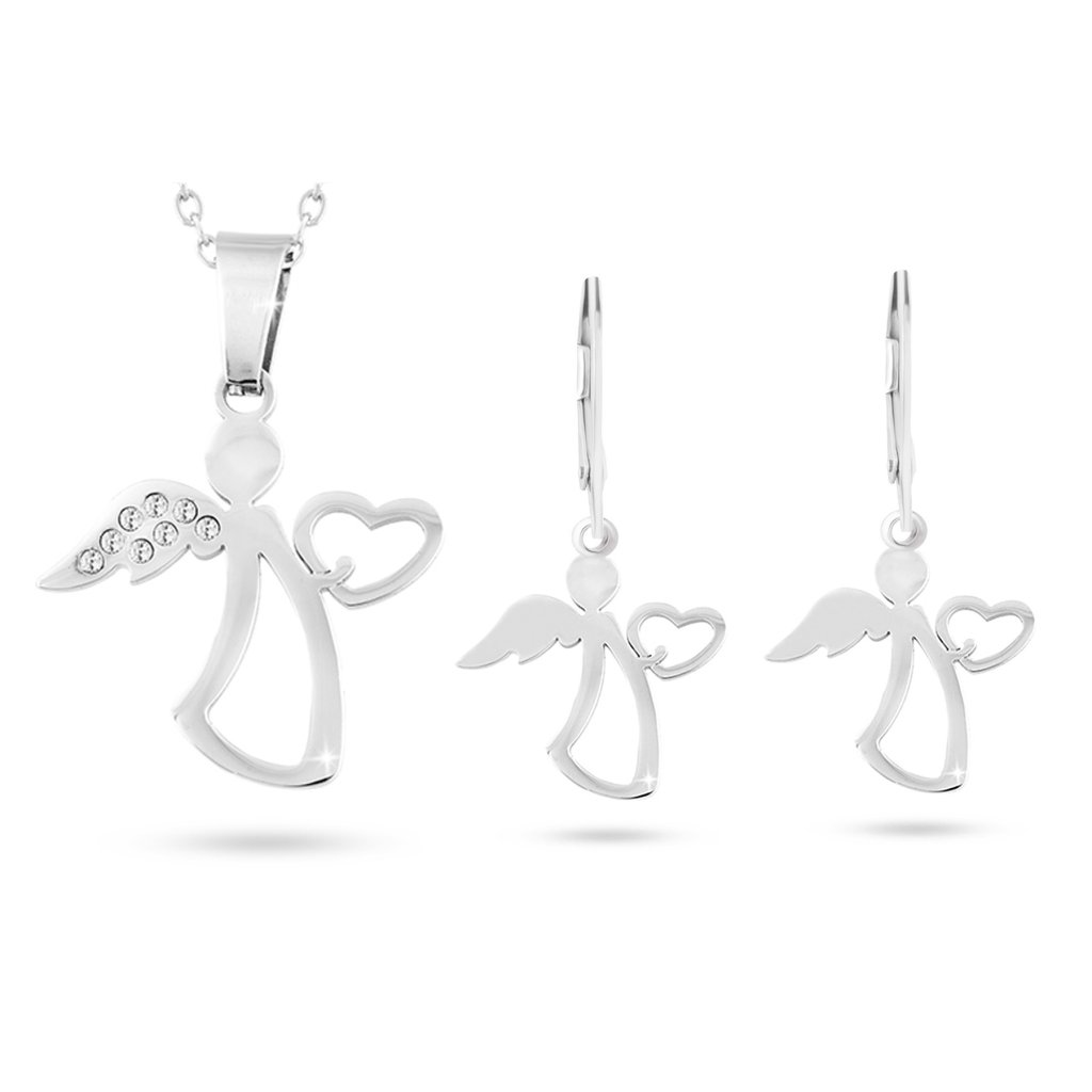 Sebészeti acél szett, angyal szívecskével, cirkónia kövekkel, nyaklánc + lógós fülbevaló 211