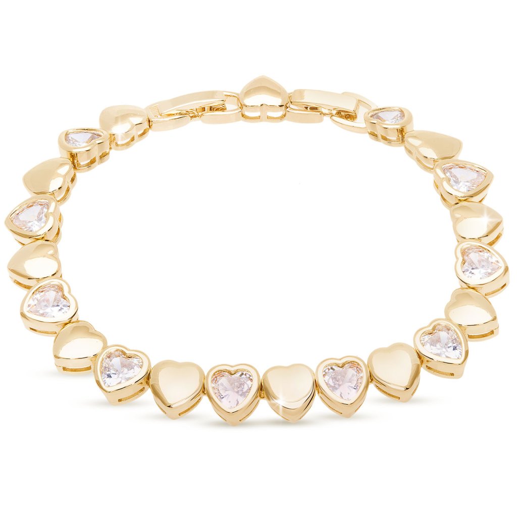 Aranyozott karkötő 14k aranyból, szívekből áll, kockacirkóniával díszítve.