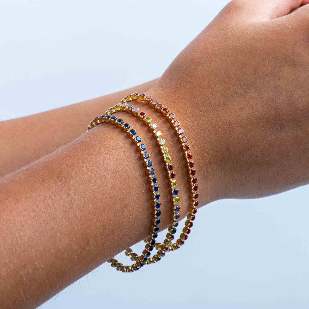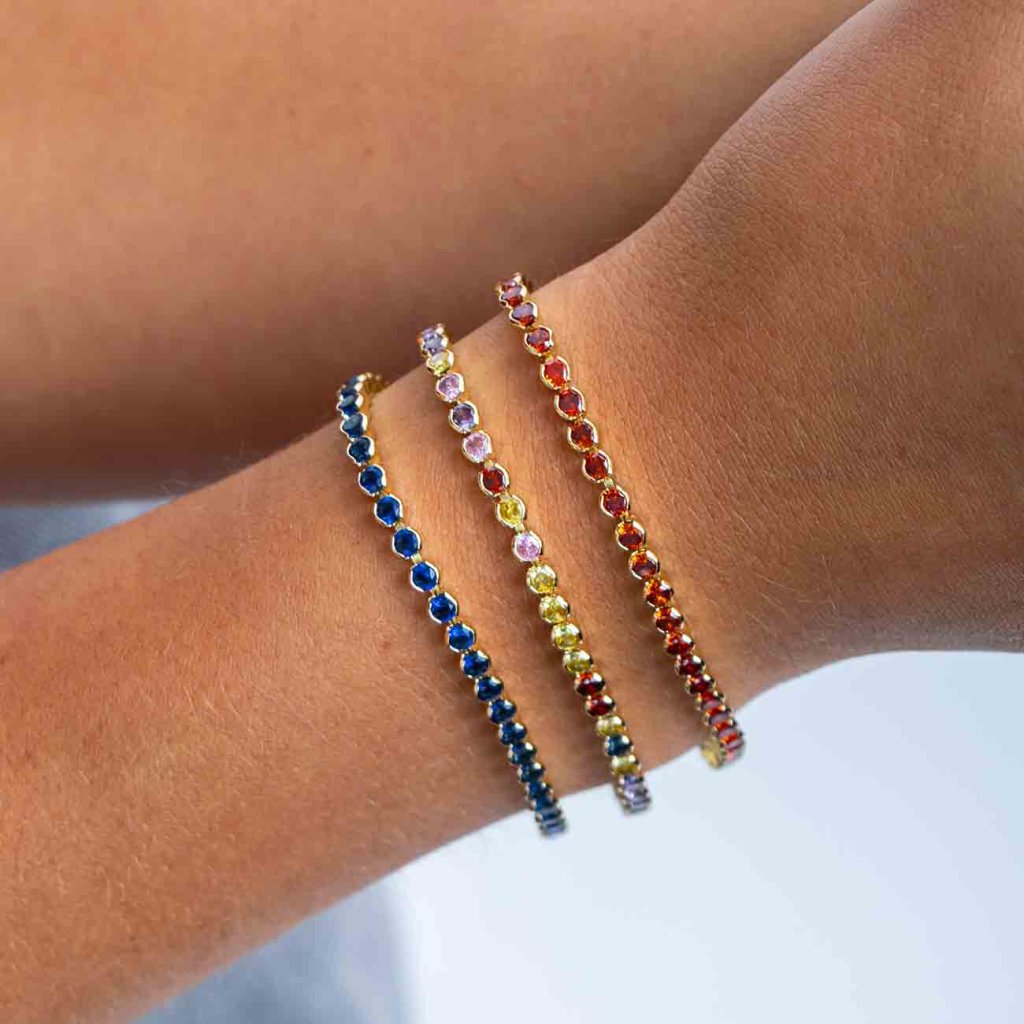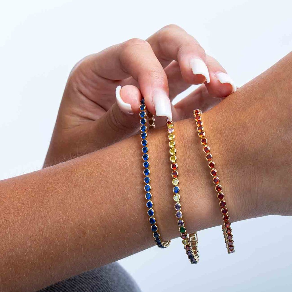 Az elegáns és időtlen tenisz karkötő a mély kék cirkónia kövekkel, finom fényével és precíz kidolgozásával hódít. Egyaránt alkalmas a mindennapi viseletre és az esti öltözékekhez, melyeknek egy csipetnyi kifinomultságot kölcsönöz.